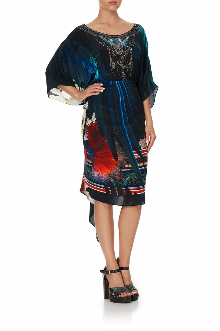 An iconic CAMILLA keepsake, the Night Flight Round Neck Kaftan is a serene masterpiece from our 15-year anniversary collection. Crafted in a striking black-based print which depicts a hypnotic birds eye view at dusk between rainforest and reef, its relaxed fit design allows this piece can be styled a myriad of ways time and time again. Wear free flowing, or style off the shoulder for a chic evening affair.