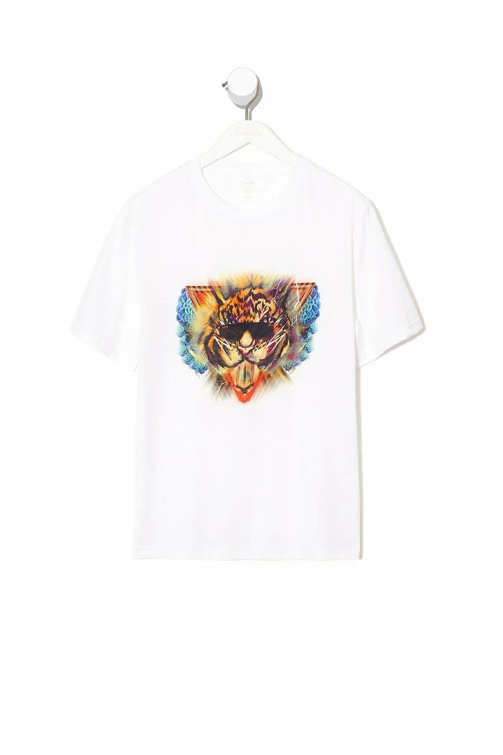 A statement tee for your dashing gentleman, the Slave To The Rhythm Round Neck T-Shirt is a core silhouette reimagined with a scene of 70’s disco style. Crafted from a soft 100% black printed cotton harbouring a bespoke CAMILLA print placement print, it features a relaxed fit, short sleeves and rib neckline. Pair back with matching printed Elastic Waist Boardshort for a striking summer ensemble.