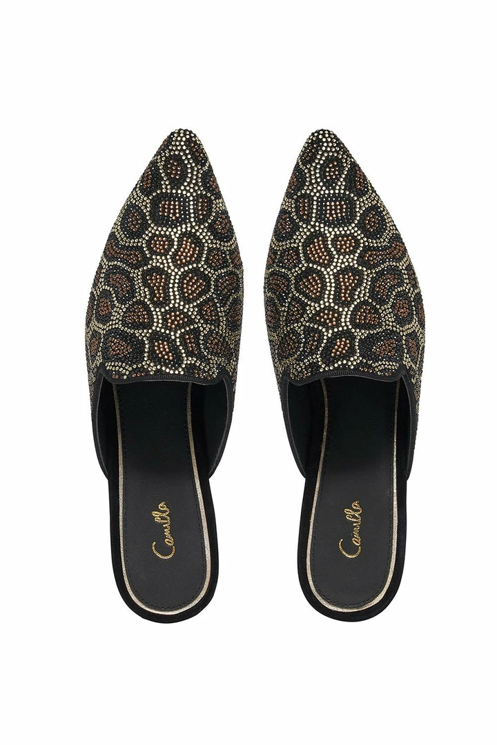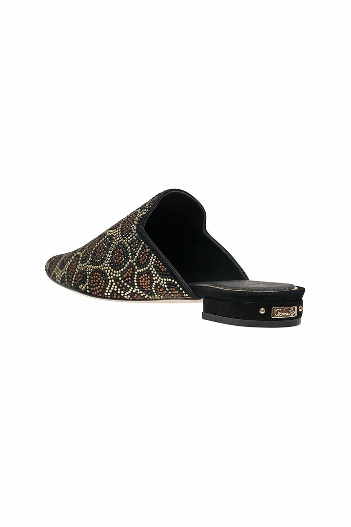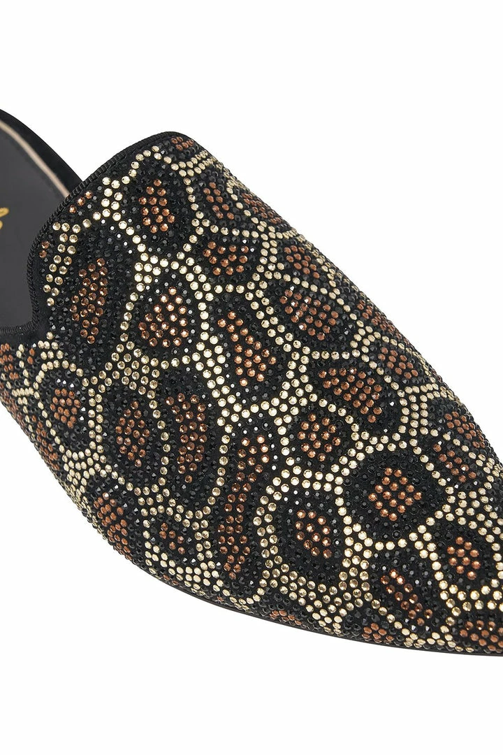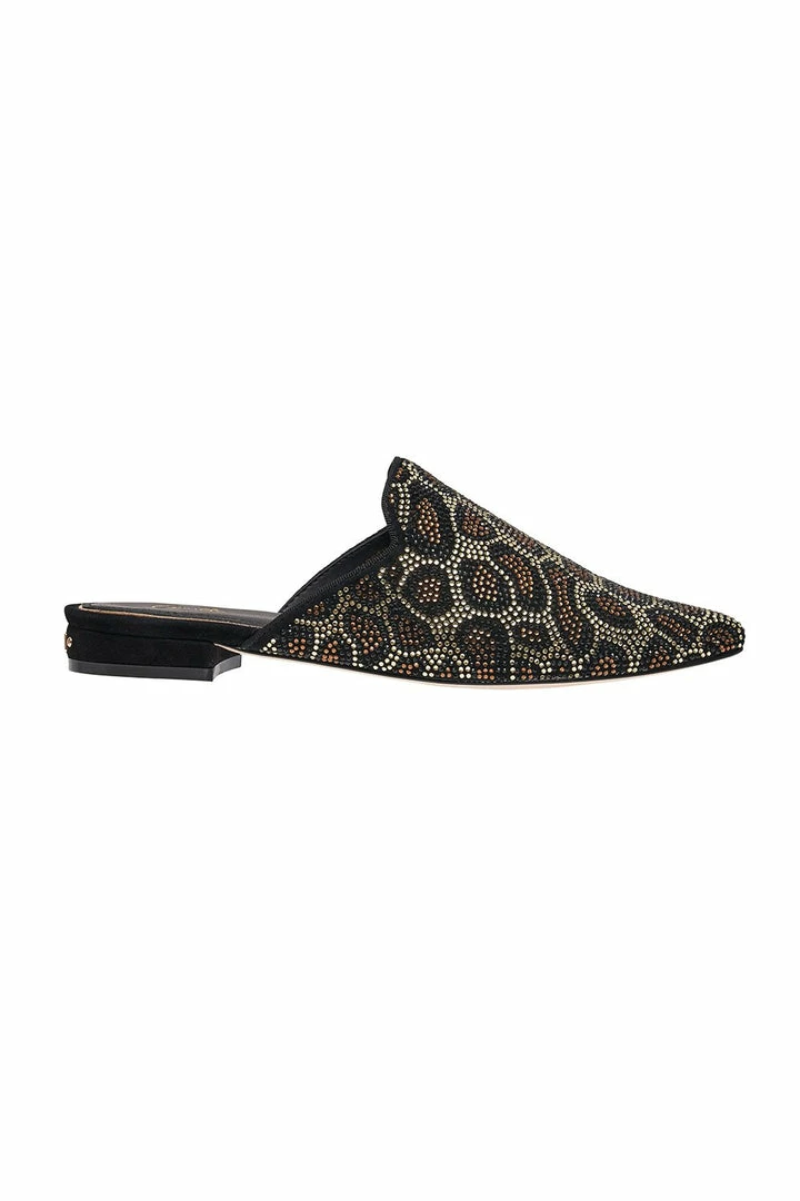 A statement loafer with an insatiable appetite for wild adventure, the Lady Lodge Crystal Animal Slipper is a new shoe style for the season. Crafted with a 100% CAMILLA leather upper and lining, this slide on style is decorated with bold all-over animal print beading, inspired by an outspoken mistress of the manor. The comfortable 2cm heel is adorned with a gold CAMILLA metal logo plate, elevating this luxe flat shoe. Style back with matching pieces from the Lady Lodge collection or with soft suiting pieces from the current season.