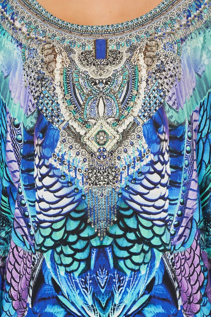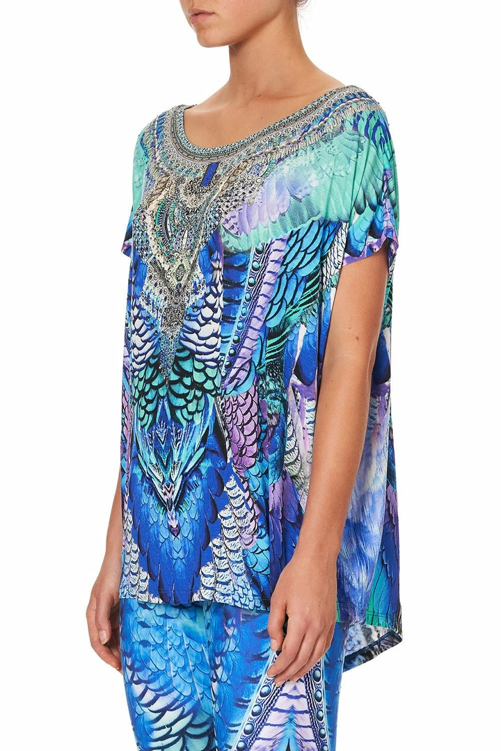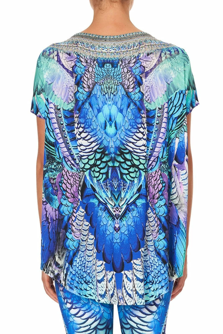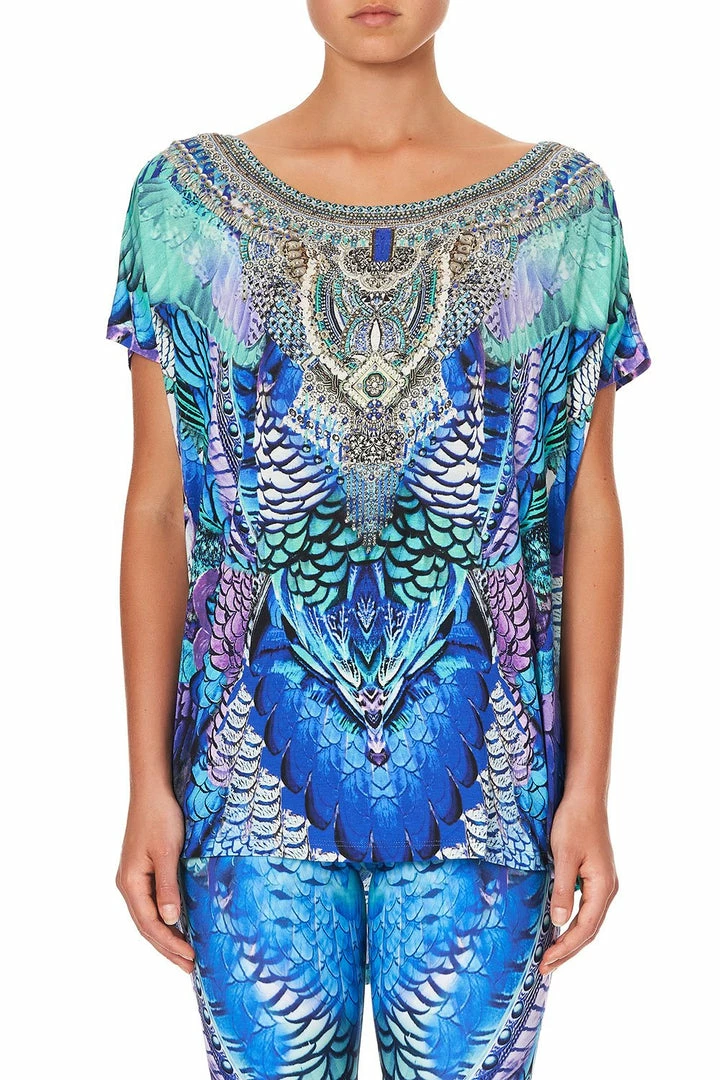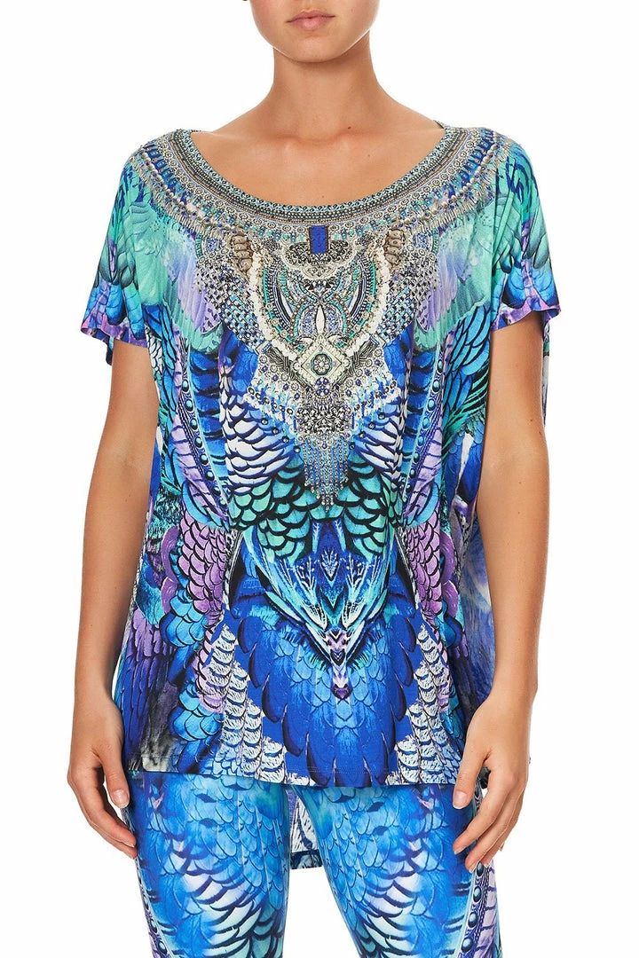 A vibrant reimagining of a much-loved print, the Moon Dance Loose Fit Tee takes inspiration from the ‘Jambo’ collection to bring a colourful energy to this season’s activewear offering. This printed zenwear t-shirt is cut in a relaxed fit with short sleeves and scoop back hem. Crafted from a super soft stretch yarn, the front is styled with a scoop neck, decadently adorned with a crystal embellished signature CAMILLA neckline. Pair back with the matching Moon Dance Active Pant and channel the celestial energy of this enchanting activewear collection.