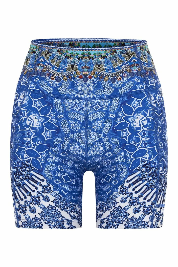 A mosaic dipped in sky-like hues, the Nierika Running Short With Pocket is a homage to our spirited Pachamama collection, a look to CAMILLA seasons past. Mirrored reflections are detailed in touches of royal blue and delicate white linework. Crafted with compression and anti-pilling technology, these luxury running shorts feature a soft high-rise waistband, pocket details for your essentials and a fitted silhouette that crops at mid-thigh. Complete your ensemble with the Active Crop.