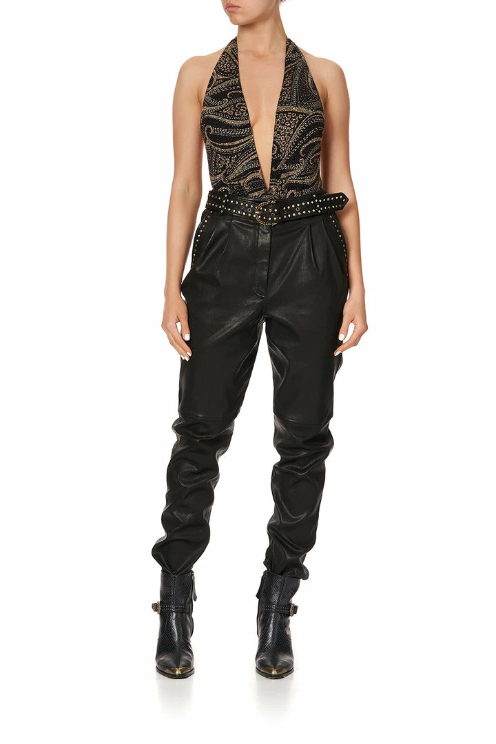 A keepsake trouser in any wandering heart’s wardrobe, the Studio 54 Belted Trouser with Draped Side are a hypnotic take on a CAMILLA leather pants that will be a staple in your wardrobe for many years to come. These effortlessly chic pants feature pockets for your convenience, fly front, waist darts and it finished off with a belt to top off the sumptuous pure leather fabric.