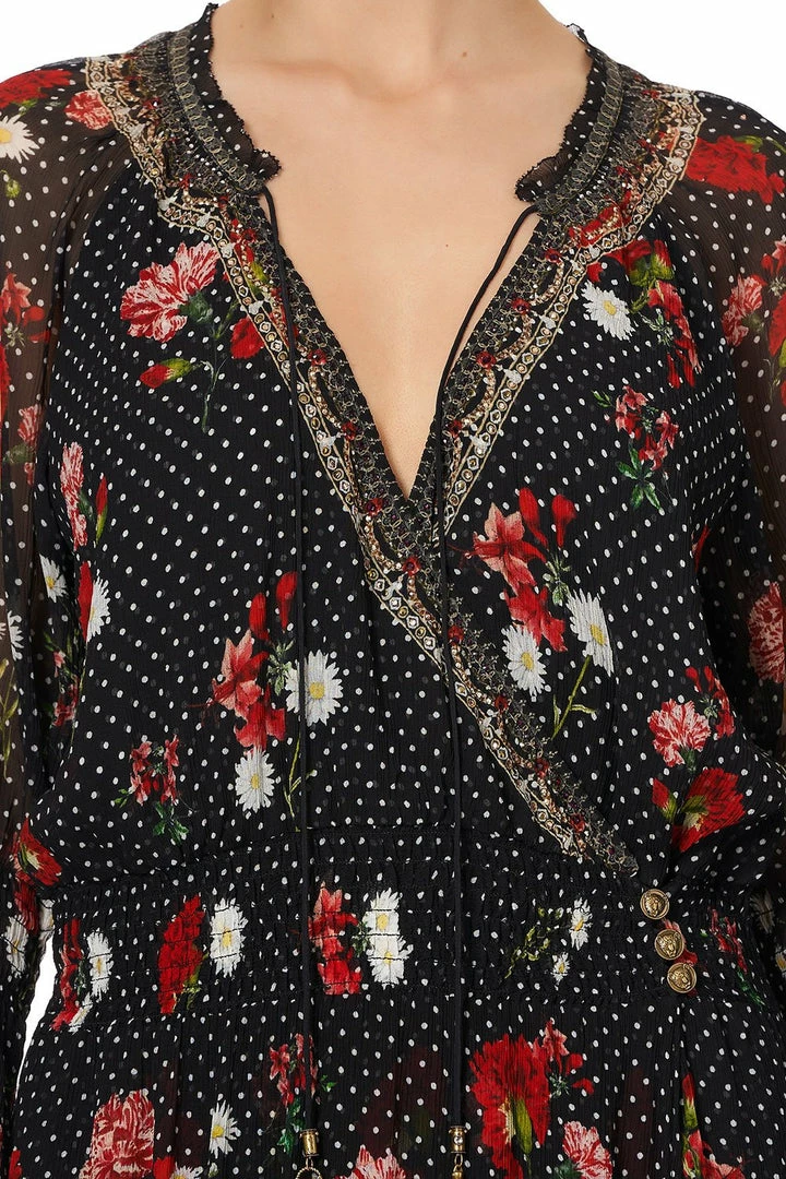 – Coastal Parisienne Blouson Sleeve Wrap Dress