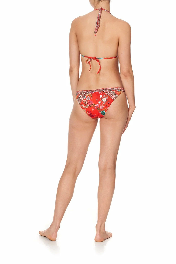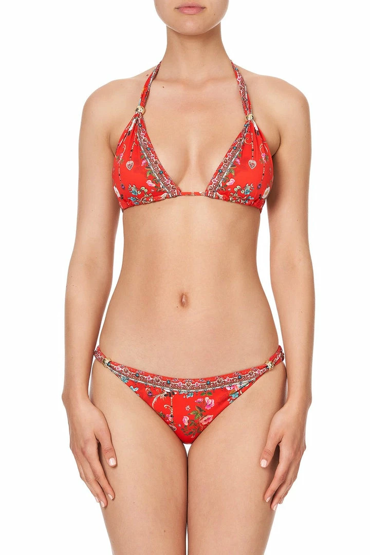 Enchanted with the intoxicating energy of a Parisian cabaret, the Cameos Can Can Ball Bikini is a bright summer red swim set decorated with a bouquet of French floral motifs, CAMILLA crystals and gold metal ball details. Crafted from luxe Italian stretch nylon this flamboyant bikini is expertly designed with an adjustable tie top to fit a B-C cup. Wear with the matching Cameos Can Can Short Tassel Sarong for a show stopping look.