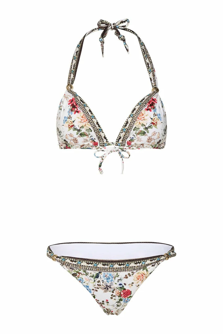 A match made in heaven, the Ball Bikini brings Shakespearean inspiration to life. A festival of florals makes way for rich poppies, soft-stained roses and lush vine leaves. Contrasting hardware and crystals that’ll capture the sun add the finishing touches while adjustable ties ensure a crisp fit. Complete the look with the Short Tassel Sarong.