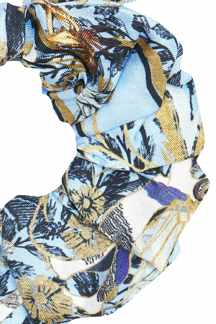 A staple accessory with a feminine mystic touch, the Fairy Fountain Scrunchie showcases the gentle fairytale blue hues of this magical print. Crafted in buttery soft silk, this scrunchie is an effortless statement that ensures practical and snag-free styling abilities. It pairs perfectly with any Fairy Fountain piece to add the finishing touches to a stunning and chic ensemble.