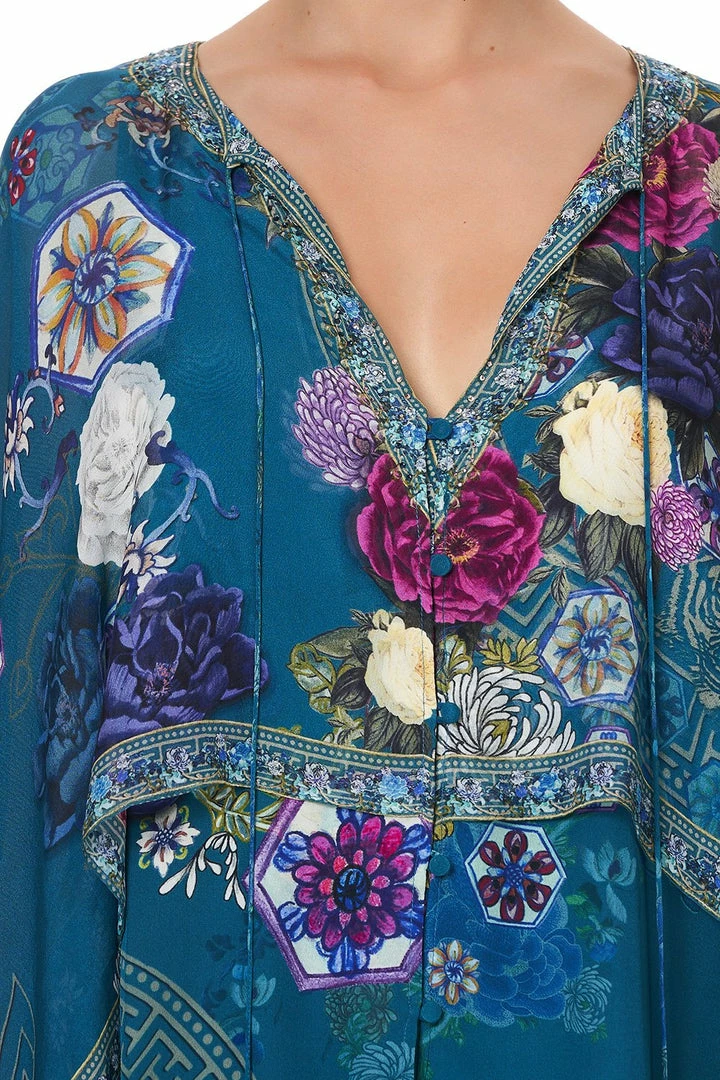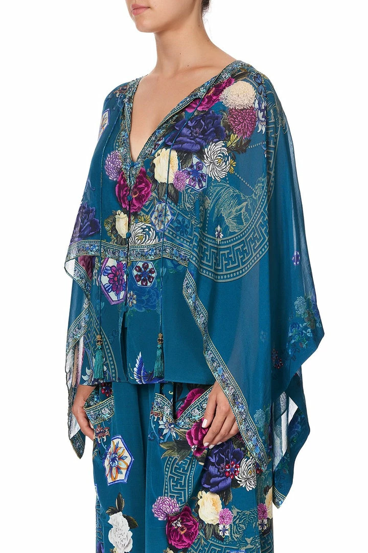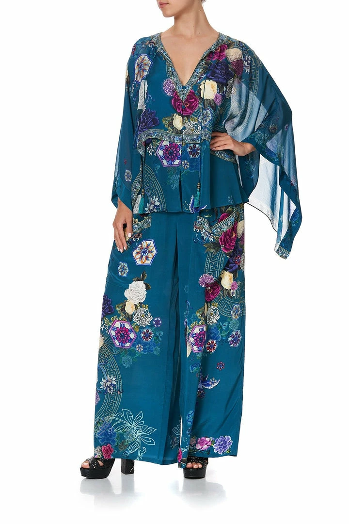 A breezy boho top rich with mesmerising emerald hues, the Lunar Gazing Sheer Layered Top is ethereal in form. Cut in CAMILLA silk with a print that depicts a scene of zodiac tigers and Chinese folk florals, this floaty long-sleeved top features a divine bodice overlay, a sumptuous v-neckline with ties and is polished with hand applied CAMILLA crystals. Layer lavishly over wide-leg trousers for a head to toe elevated gypsy ensemble.