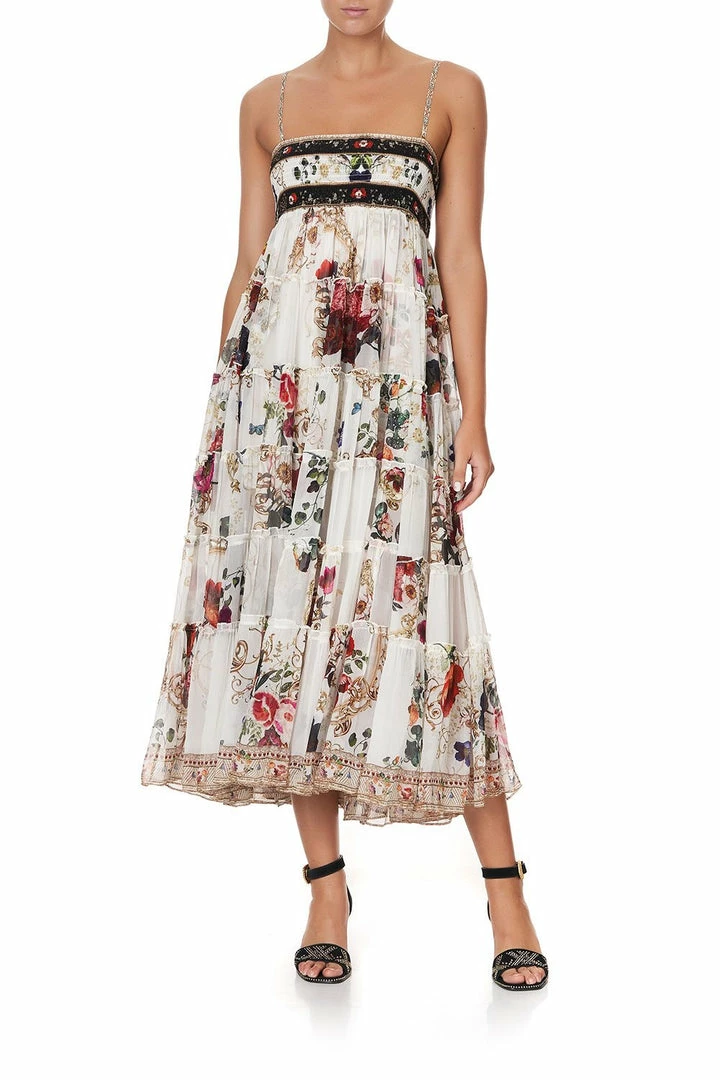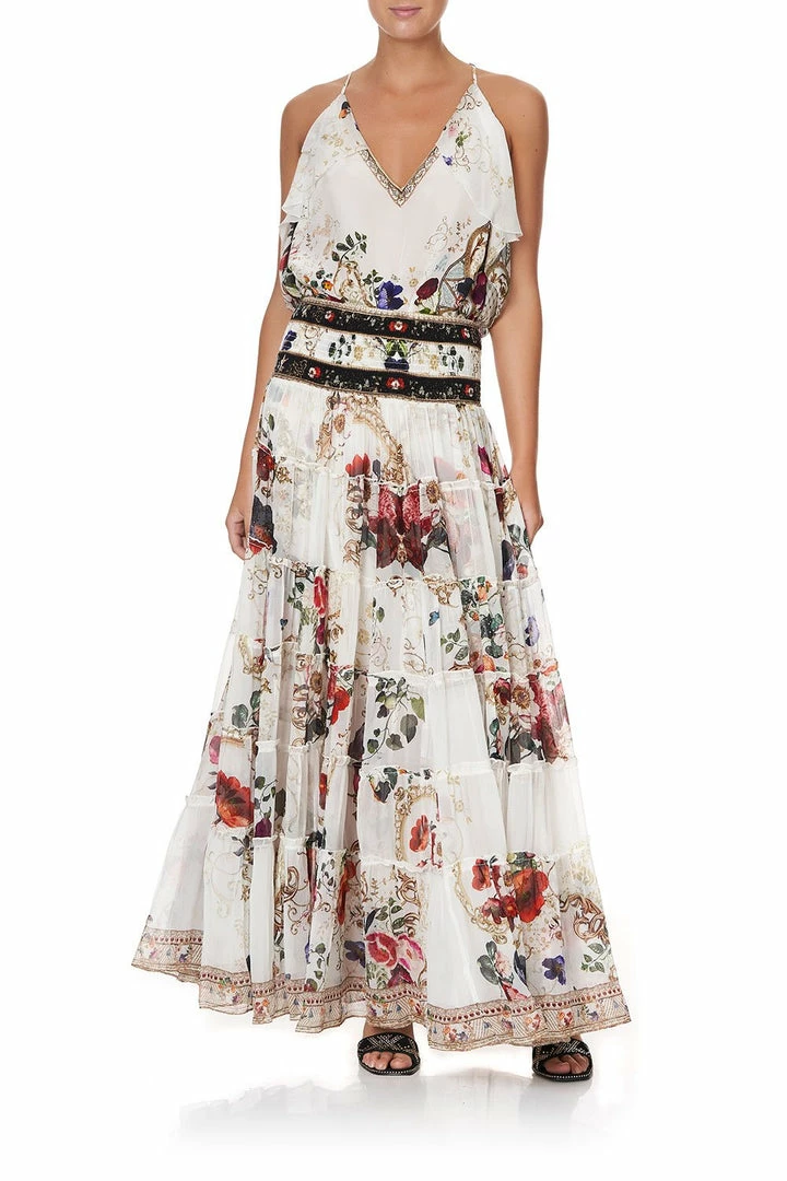 A skirt that’s a tumbling vision of bohemian design, the Fairy Godmother Sheer Tiered Maxi Skirt is enchanted with accents of fairy tale magic. Crafted with a bespoke CAMILLA print inspired by a bouquet of hand-painted florals blooming against a fanciful cream back drop, this billowing floor length peasant-style skirt features a tiered silhouette and a shirred waist band for free movement. We love to style this piece back with matching swimwear pieces.