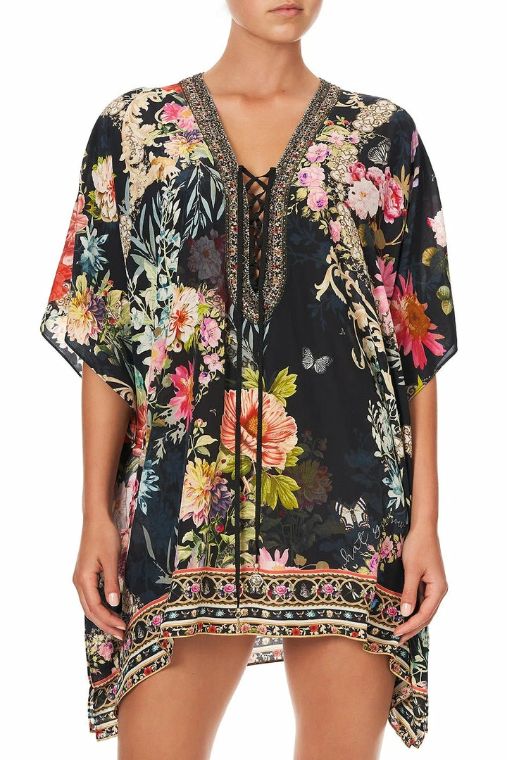 Throw the Hampton Hive Short Lace Up Kaftan over a bikini or wear as an elegant top. Filled with florals inspired by English gardens and antique markets, and awash with CAMILLA crystals – it deserves to be seen beyond the beach. Its lace-up detail allows for adjustment to the neckline which only adds to its versatility.