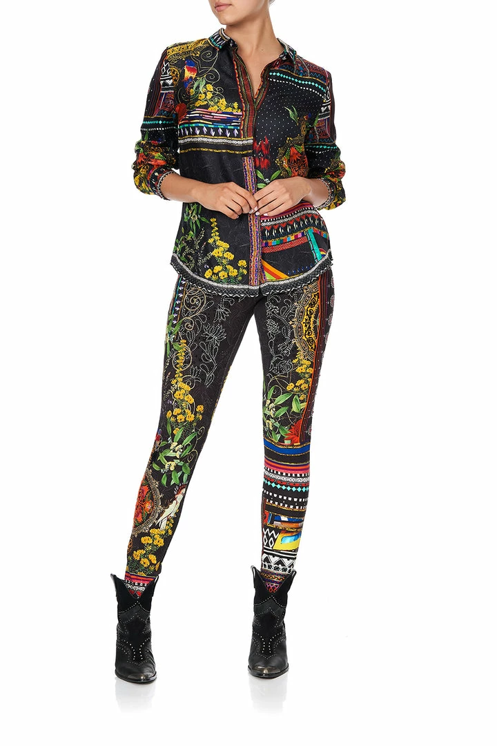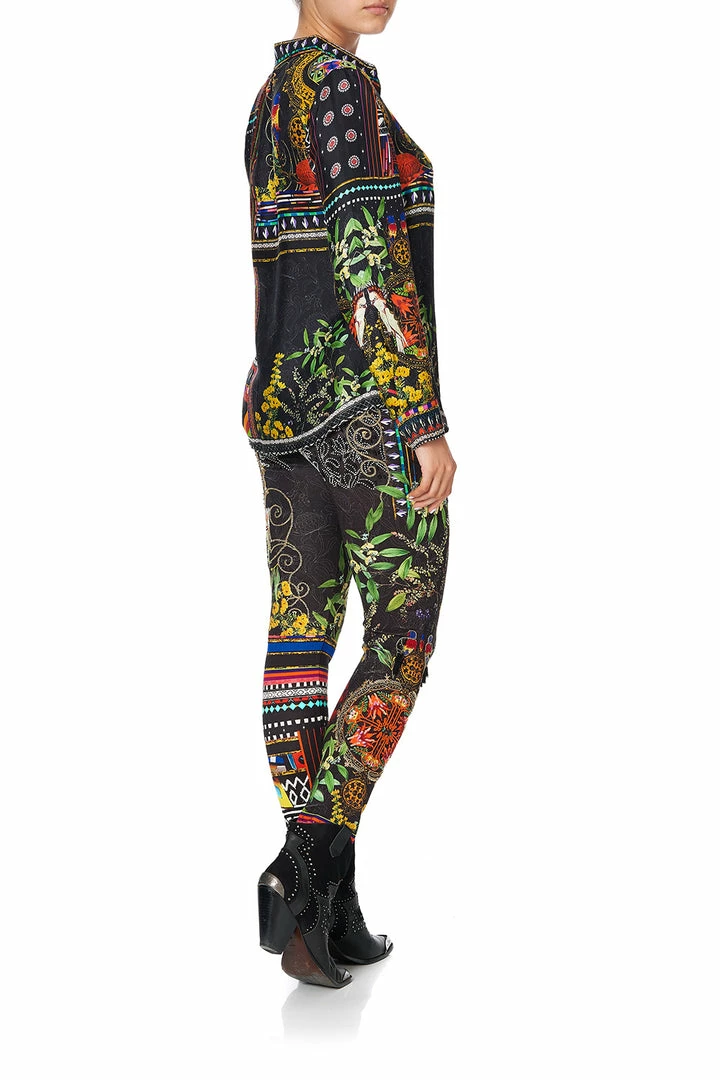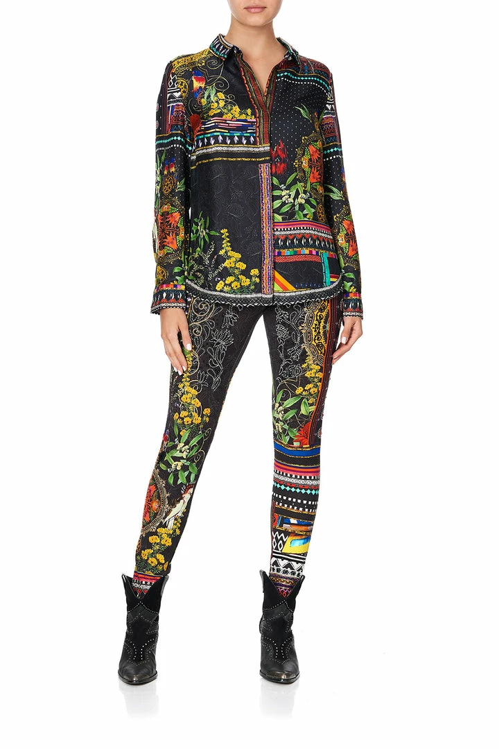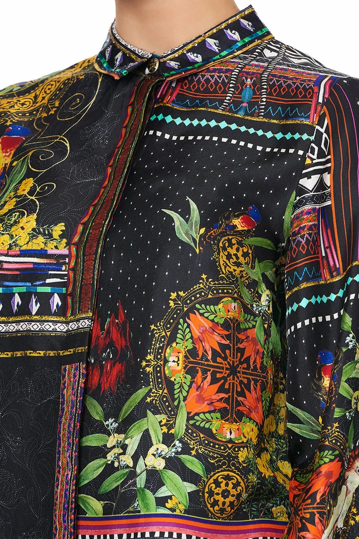 With yellow highlights and moody hues, the Blackheath Betty Slim Fit Long Sleeve Shirt is a triumphant celebration of 80s Australia. This silk blouse features a flattering shirt collar, buttoned cuffs, digitally printed silk, as well as hand-placed crystals as detail.
