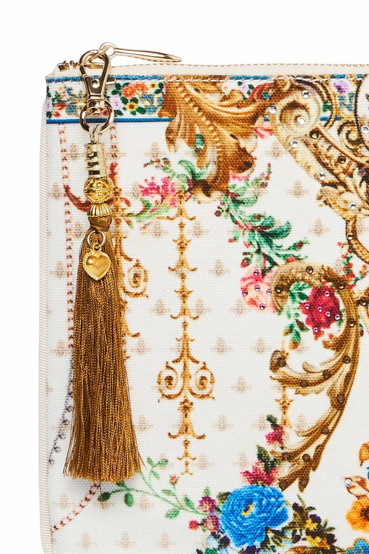 The ideal purse for storing your phone and collection of cards, the By The Meadow Small Canvas Clutch is an iconic CAMILLA accessory updated with this season’s English garden party inspired print. Printed with a fun floral design, this hand-placed crystal embellished clutch features two zip compartments, signature CAMILLA tassel and a contrast piped edge. A lavish keepsake for yourself or gorgeous gift for a loved one.