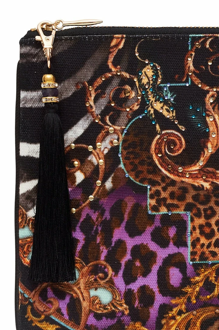 An iconic CAMILLA accessory keepsake purse, the She’s Got Grace Small Canvas Clutch showcases the patron saint of disco. Grace Jones was unapologetic in carving out her own unique style. She was all angles and androgyny: her sense of aesthetics raised the bar for pop culture. A piece reimagined each season, this soft canvas purse features a top zip with side and internal pockets, a boho tassel and parrot clip, a contrast piped edge and is finished with love with hand-applied CAMILLA crystals. Perfect for storing cards and phone, add to your collection or gift to a loved one.