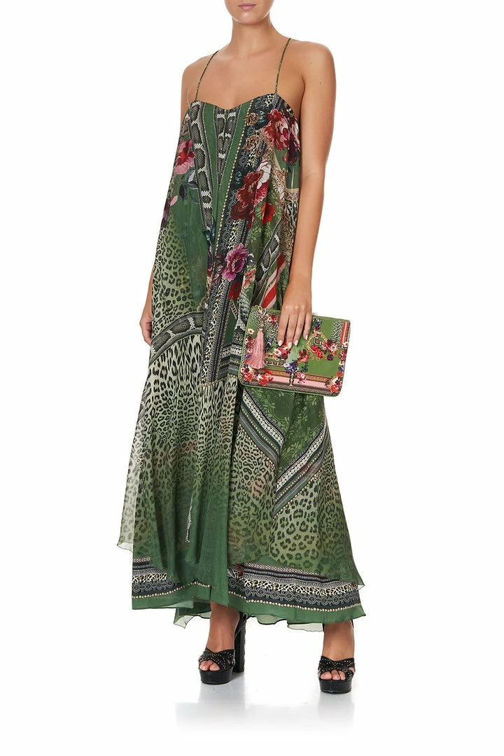 A lush purse enriched with Indian folklore, the Tales of Time Small Canvas Clutch displays a print of power and peace inspired by Indian emperor Ashoka. This green printed purse features boho swing tassels, parrot clip attached to an easy-glide zip opening, internal zip pocket, as well as contrast piped edge. Perfect for safely storing the essentials whilst offering an element of statement luxe to any outfit.