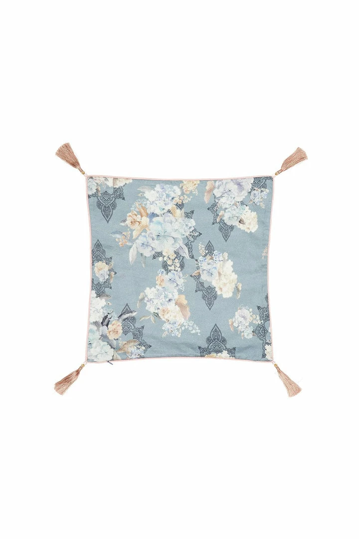 A dazzling statement cushion that glimmers with blue and pink accents, the Le Palais Du Zahir Small Square Cushion is crafted in a printed silk that gleams with ornate paisley flourishes across a soft blue backdrop. This cushion features digitally printed silk, dual printed sides, tassels, a contrast piped edge and hand placed CAMILLA crystal embellishments.