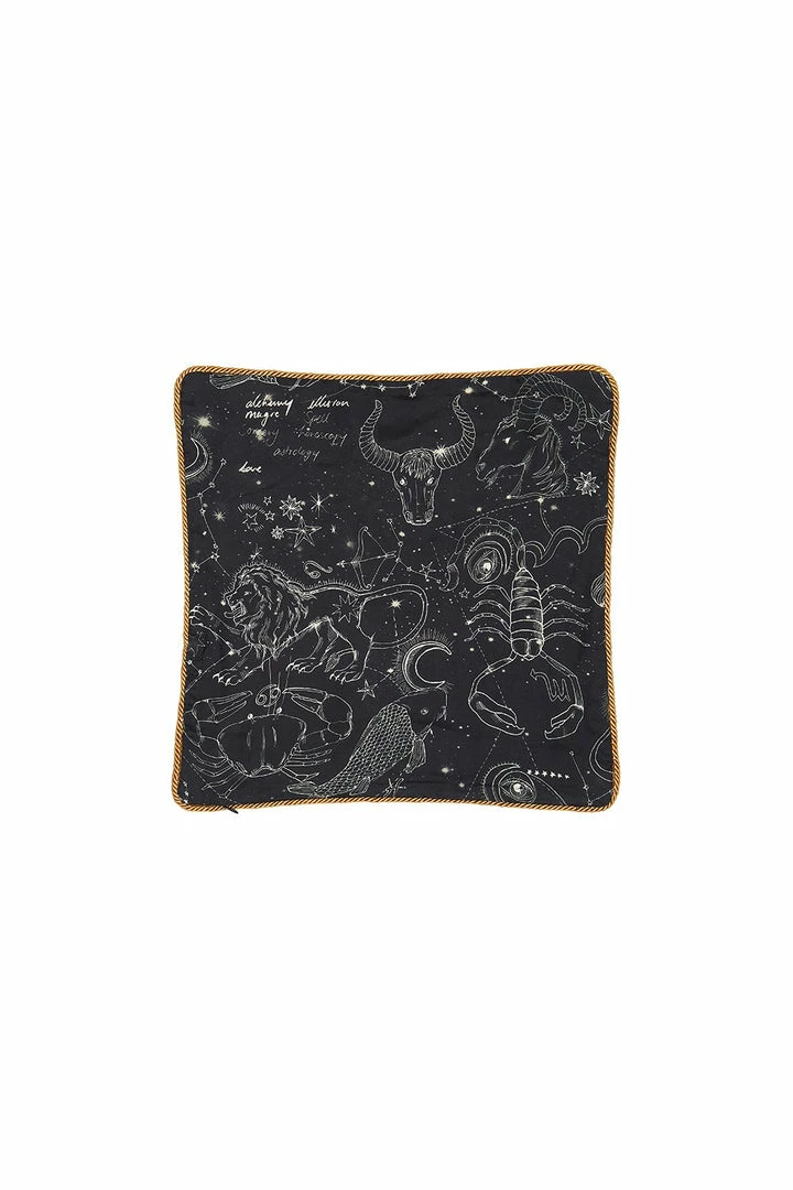 A cushion for lovers of astrology, the Moon Set Small Square Cushion is enriched with teachings from the sky above. Showcasing a midnight black-based print referencing constellations, this hypnotic embellished cushion features digitally printed silk, contrast piped edge, as well as hand-placed crystals as detail. Add to your collection of CAMILLA home pieces, or gift to a loved one for an addition of universal magic to their home.