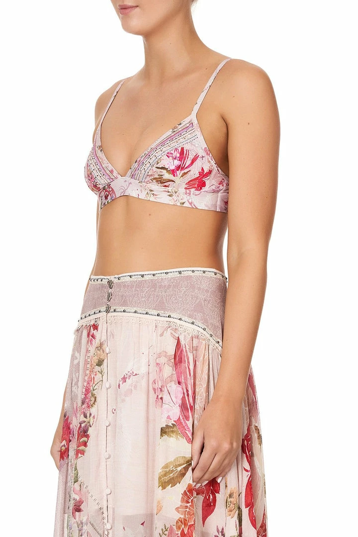 A statement CAMILLA bra to start every outfit with, the Istenanya Soft Bra with Back Clip is a whimsical fairytale dream. Crafted from the softest stretch fabric in a pink hungarian fairytale inspired print, this dreamy crystal-studded bra features adjustable crossover straps, comfortable and form-smoothing elastic underbust band, and a three-hook fastening for a custom fit. Available in A-B & C-D sizing options, style under low cut looks for a vision of bohemian luxe.