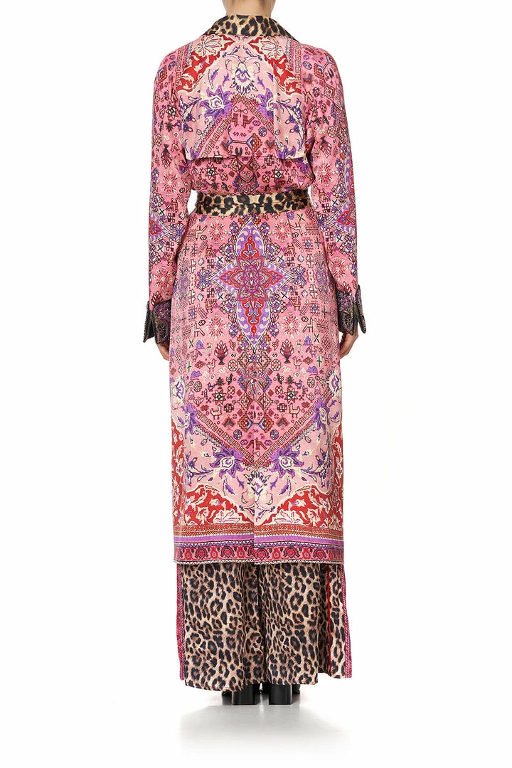 Bright with fairytale tones embodied within the decadent and romantic silhouette, the Lotus Lovers Soft Trench with French Cuff is crafted in butter printed silk that illustrates the tales of Punjab’s Phulkari embroidery. This devine statement trench boasts high side splits, a flared back panel, in seam pockets and is fully lined. The perfect addition to your collection, pair over like colours for a layered winter look or match with the Lotus Lovers Pant with Insert Side Panels for a chic ensemble.