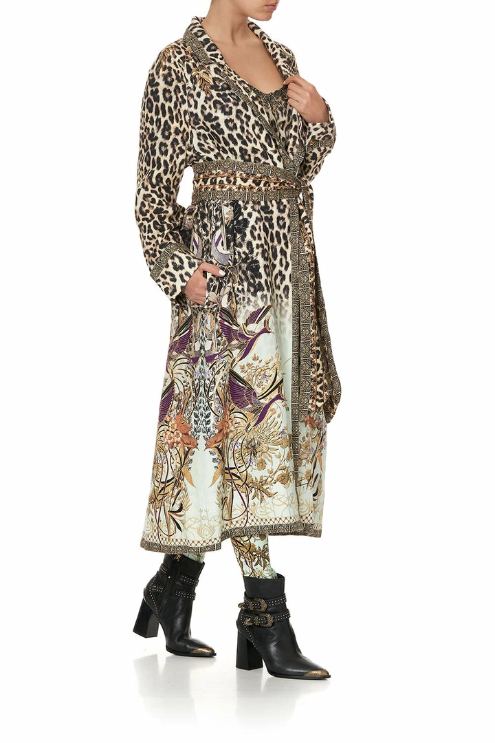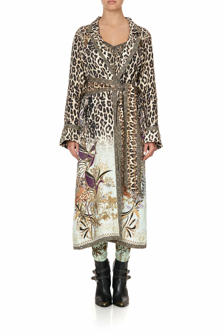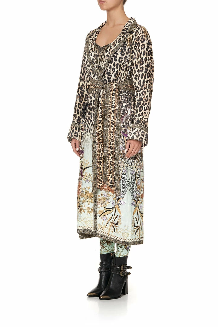 An opulent chic statement coat that glimmers with mystical accents and bold animal print, the Nomadic Nymph Soft Trench with French Cuff is a stunning embodiment of dreamy fairytales over a roaring leopard print backdrop. This linen coat, perfect for a layered winter look features in seam pockets, a wide french cuff detail, a flared back panel and high side splits. Pair over any of your favourite CAMILLA pieces to elevate your look and to make them wearable all year round.