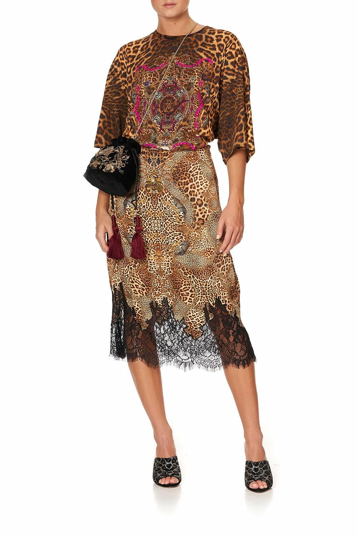 The vibrant all-over leopard print design decorating the Lady Lodge Super Oversized Tee tells the tale of an endearing mistress of the manor with an insatiable appetite for wild adventures. Styled from pure CAMILLA cotton, this round neck t-shirt is styled in an oversize fit with loose elbow length sleeves. A crystal embellished regal motif decorates the front, elevating this luxe loungewear tee. Style tucked into jeans for a bold yet casual lunch look or strike a more head-turning note and pair with the matching Lady Lodge Jersey and Silk Mix Drop Crotch Pant.