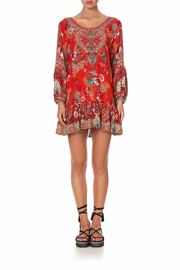 Fun, flirty and brimming with a palpable energy, the Cameos Can Can A Line Frill Dress is a loose-fitting silk style bursting with floral splendour. Embellished with CAMILLA crystals and featuring an elasticated neckline and frill details, the exaggerated flare sleeves mirror the excess of Parisian debauchery. Belt at the waist for a accented silhouette and pair with heels to dance the night away.