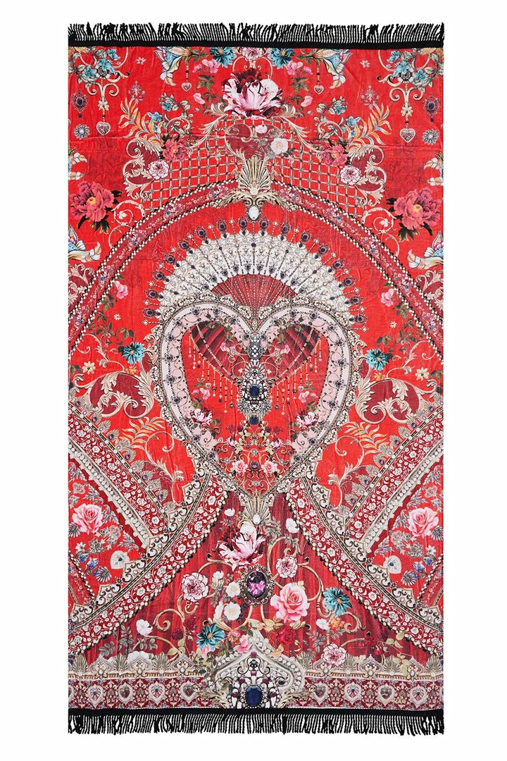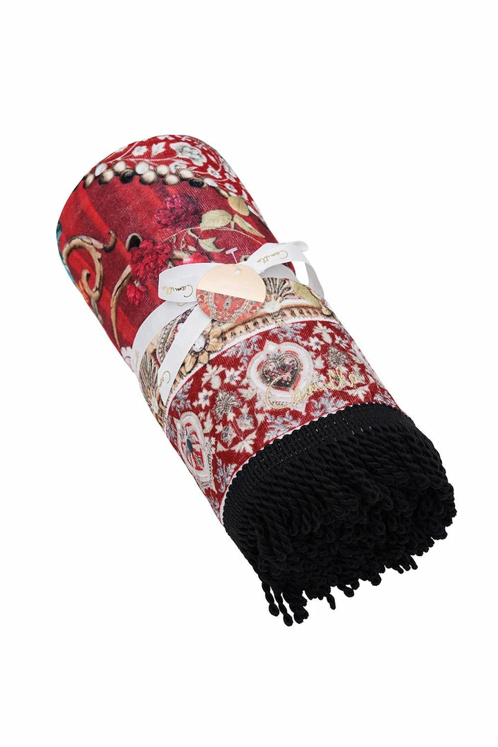 Vibrant, daring and full of love, the Cameos Can Can Beach Towel is a bold seaside accessory for lovers of sunshine and adventure. Inspired by a Parisian love story, the red CAMILLA cotton canvas is decorated with romantic symbolism with floral accents and a bohemian spirit.
