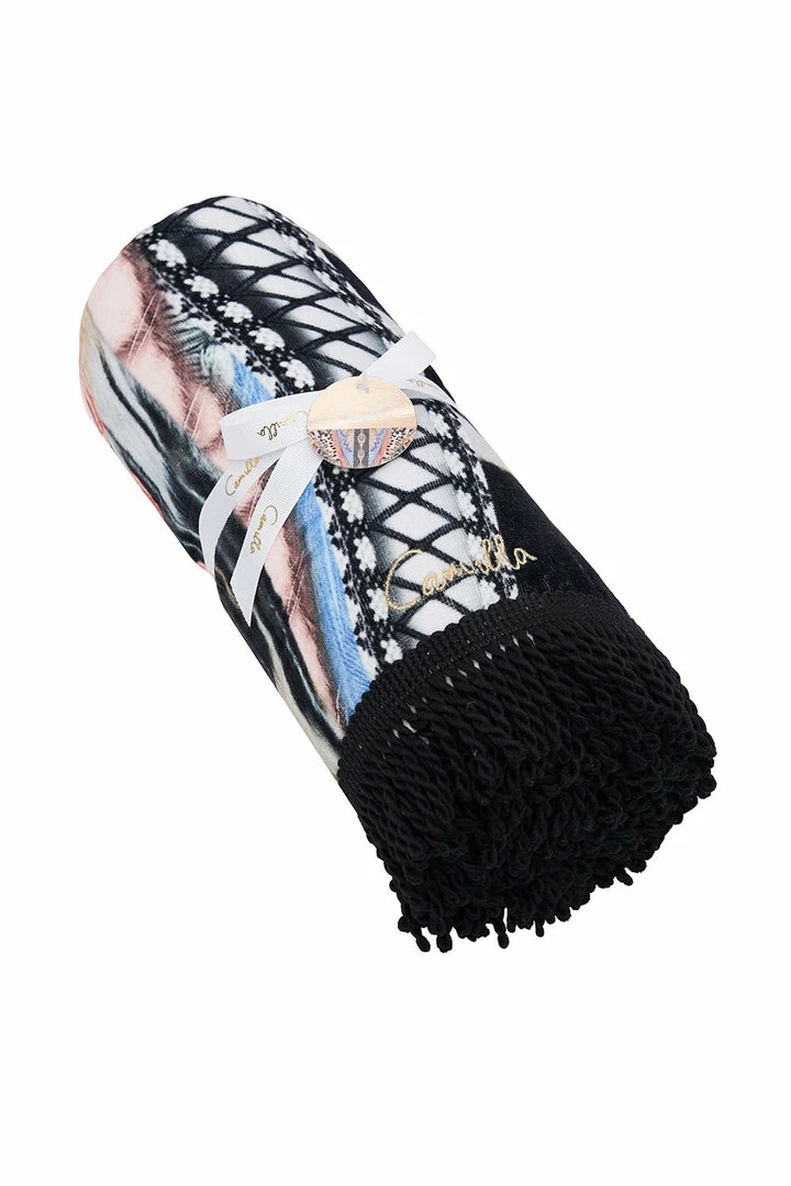 A cotton beach towel decorated a vivid animal print inspired by the majestic beauty and wonder of nature, the Love On The Wing Beach Towel is a colourful addition to your seaside essentials. Crafted from 100% CAMILLA cotton, this boho beach essential makes the perfect gift for a sun seeking loved one.
