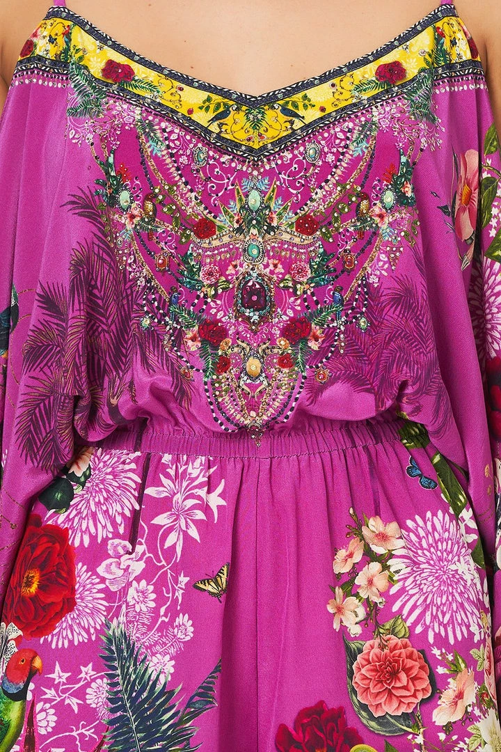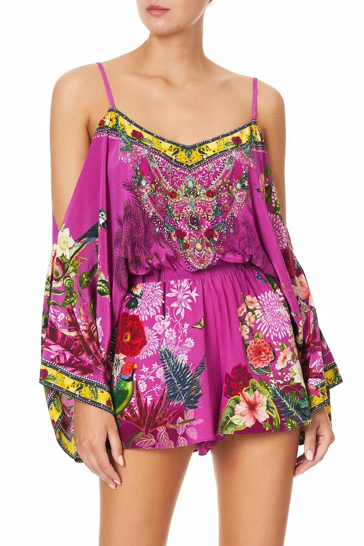 A holiday essential – the Jungle Language Drop Shoulder Playsuit combines elegant florals, with a playful design. Made from 100% silk, with an elasticated waistband, it’s breathable and comfortable. A split sleeve and mini length make it ideal for dressing up in the evening or catching the rays by day.