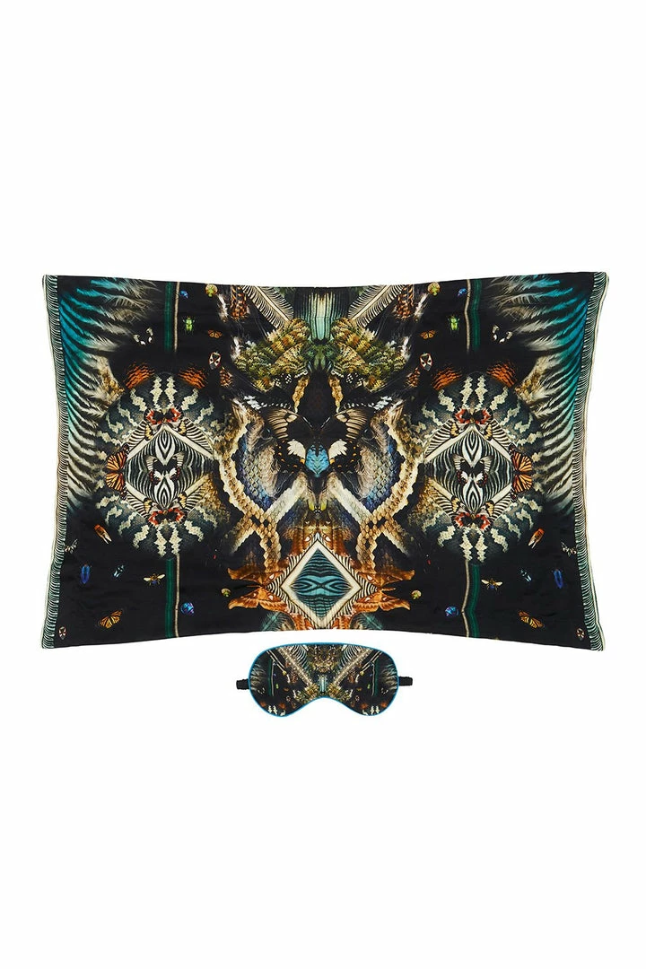 One for the dreamers, our Maternal Instinct Eye Mask and Pillow Set will transport you to the hypnotic dreamscape of the Daintree Forest. Rest your eyes on its 100% silk material and revel in luxe with its hand-applied CAMILLA crystals.