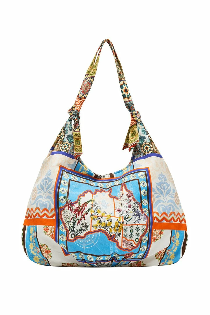 With retro beach shacks as muse, the Gone Coast Hobo with Tie is a loving ode to the Australian coastline. This printed bag features a practical internal zip pocket, magnetic snap fastening, lush all-over print, as well as hand-placed crystals as detail.