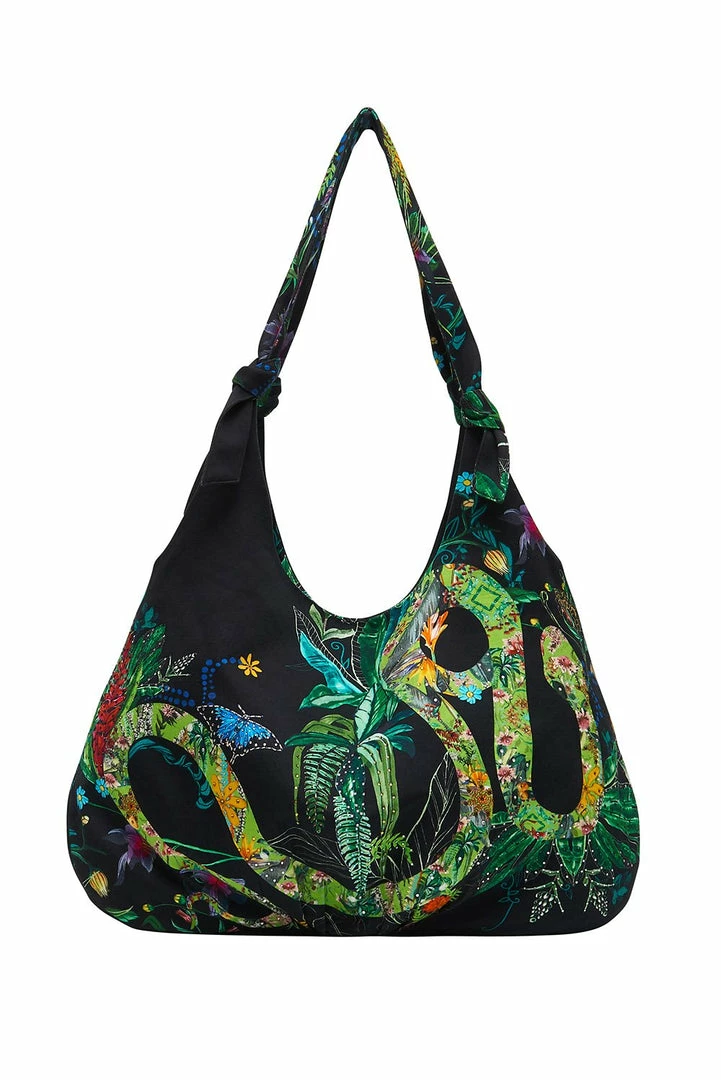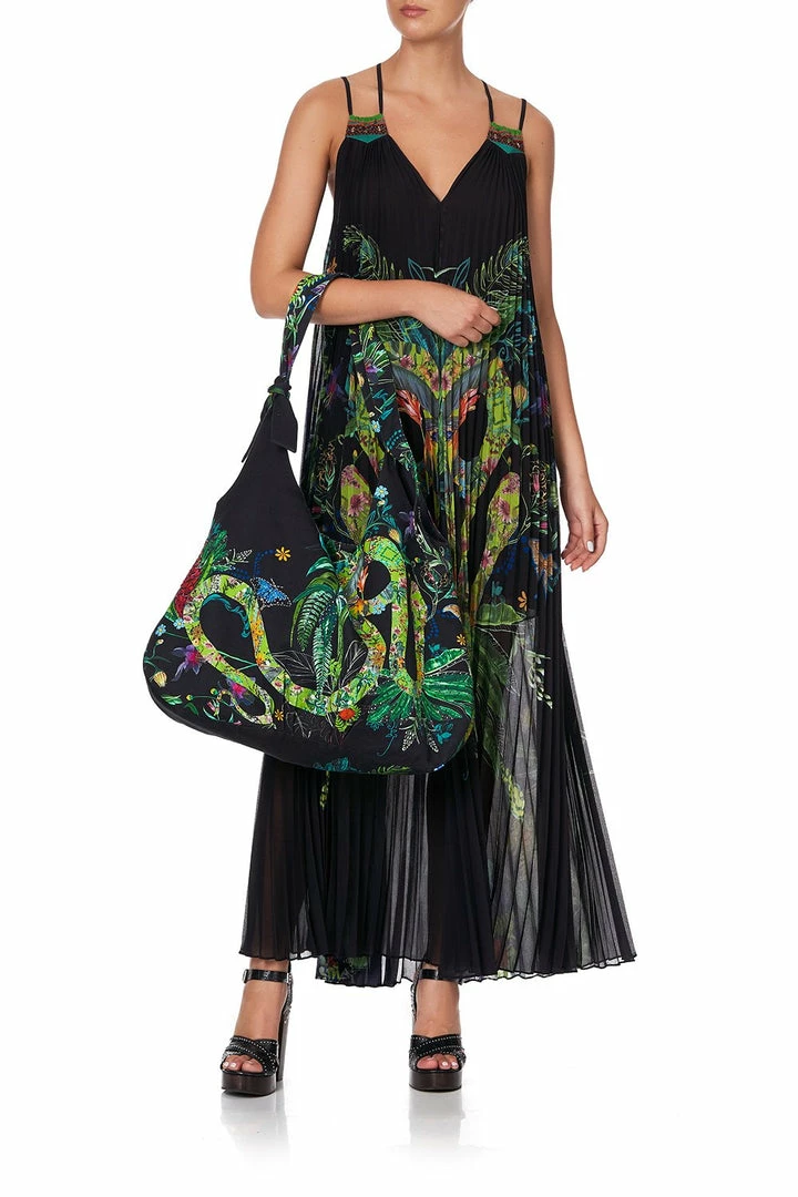 Illuminating memories from a boat cruise at dusk along the Daintree River, The River Cruise Hobo With Tie evokes boho luxe. This printed handbag features a practical internal zip pocket, magnetic snap fastening, digitally printed linen satin, as well as hand-placed crystals as detail.