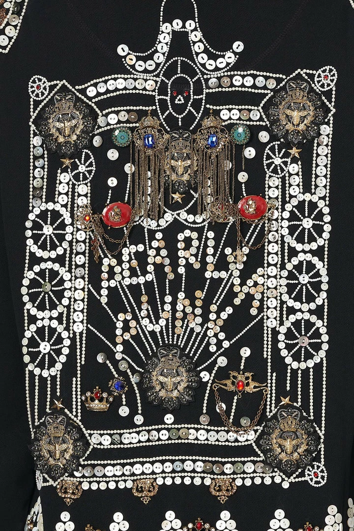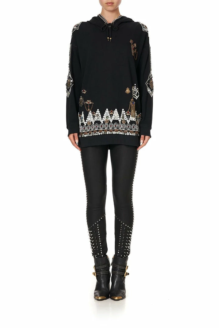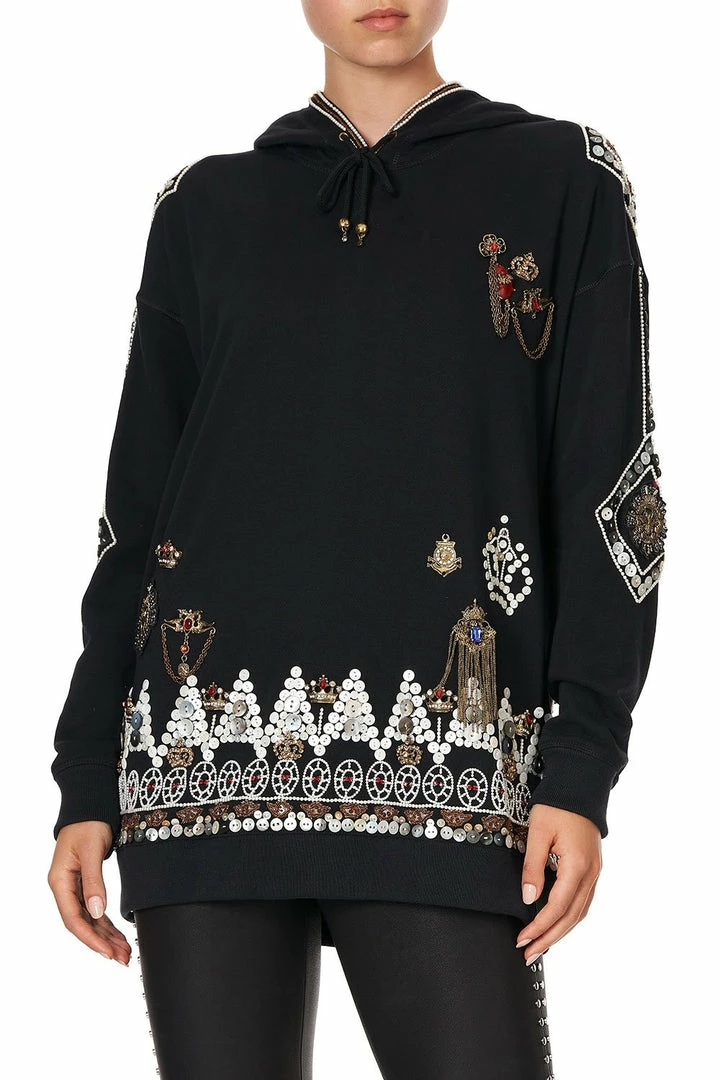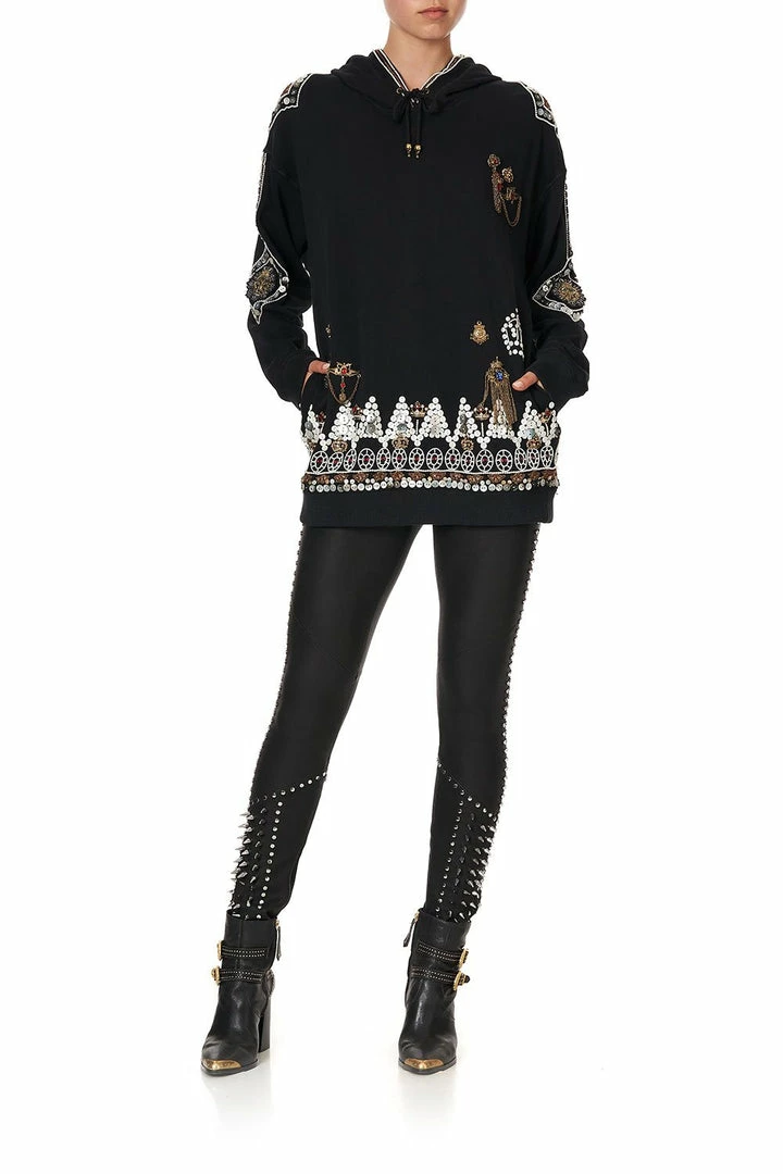 A hero piece fit for a Pearly Queen, the Punk Of Primrose Hoodie With Pockets takes inspiration from the heart of London’s East End. A keepsake style of incredible artisan precision, this cotton jumper is elaborately decorated with mother of pearl buttons and signature CAMILLA trinkets. Unequivocally mesmerising, this luxe loungewear hoodie is cut in an oversized fit and styled with drawcord neck and silk lining in the pockets and hood. Wear back with the matching Punk Of Primrose Lounge Trouser With Cuff with a head turning statement look.