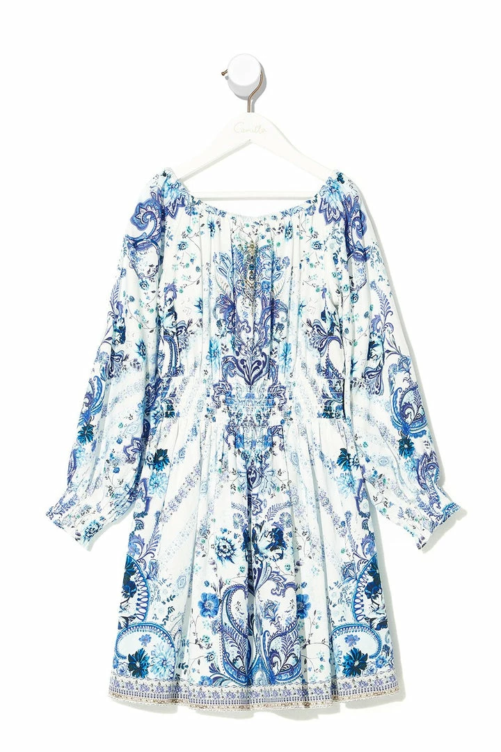 Influenced by the dawning of a new age, our Talking About A Revolution Kids Shirred Waist Dress is enriched with a paisley of blue and white. Made for weekend revelries and sunny sojourns.