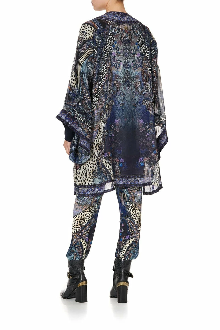 A classic CAMILLA essential for a luxe resort outfit, the Festival Express Kimono With Tie Belt is infused with the freedom that flows within Janis Joplin and her electrifying music making her completely and utterly unbound. Featuring opulent kimono sleeves, contrast neckband, decadent all-over print with tropical purple hues, as well as hand-placed crystals along the neckline – this silk robe exudes ornate charm.
