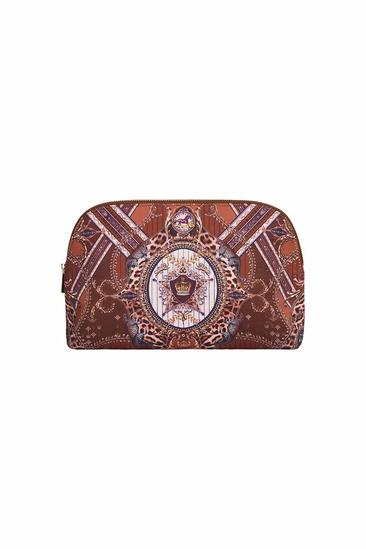 A suitcase essential for those with an insatiable appetite for wild adventures, the Lady Lodge Large Cosmetic Case is the ideal gift for wanderlust souls. This waterproof makeup bag has an outspoken mistress of the manor as its muse and is decorated with a plethora of royal symbols in earthy tones that match its countryside inspiration. A zip closure is finished with CAMILLA logo puller, matching the gold metal logo on the front. A handbag must-have for makeup touch-ups on the go.
