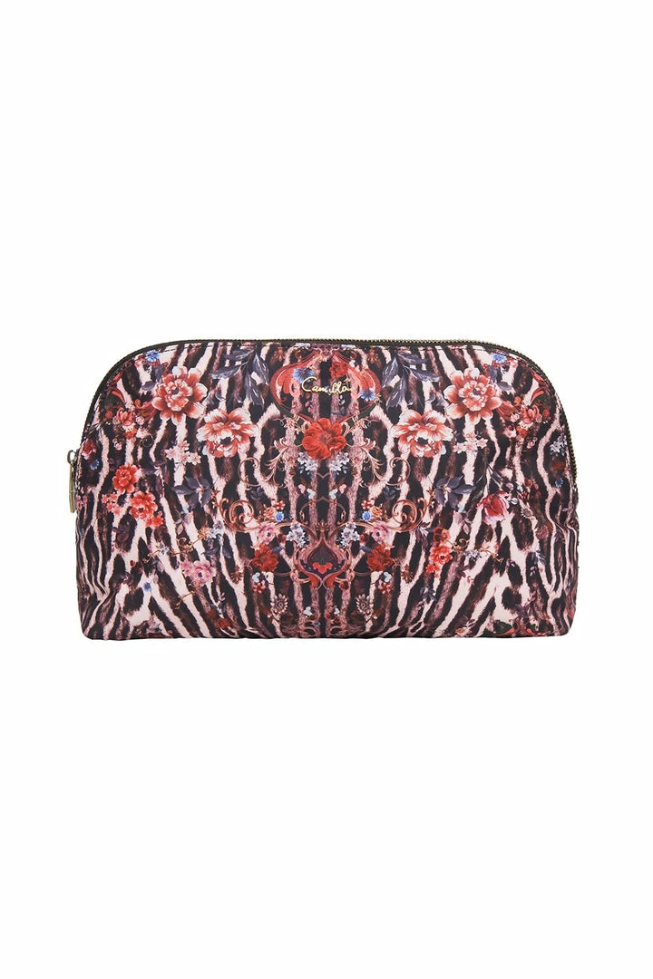 A suitcase essential for the wandering heart, the Liv A Little Large Cosmetic Case is enriched with hues of leopard crowned with pink florals. Mused by a sweet seduction amongst fiercely feminine blooms, this piece is crafted from a faux leather, it features practical internal pocket storage, sumptuous all-over print, as well as contrast zipper pullers and gold CAMILLA logo.
