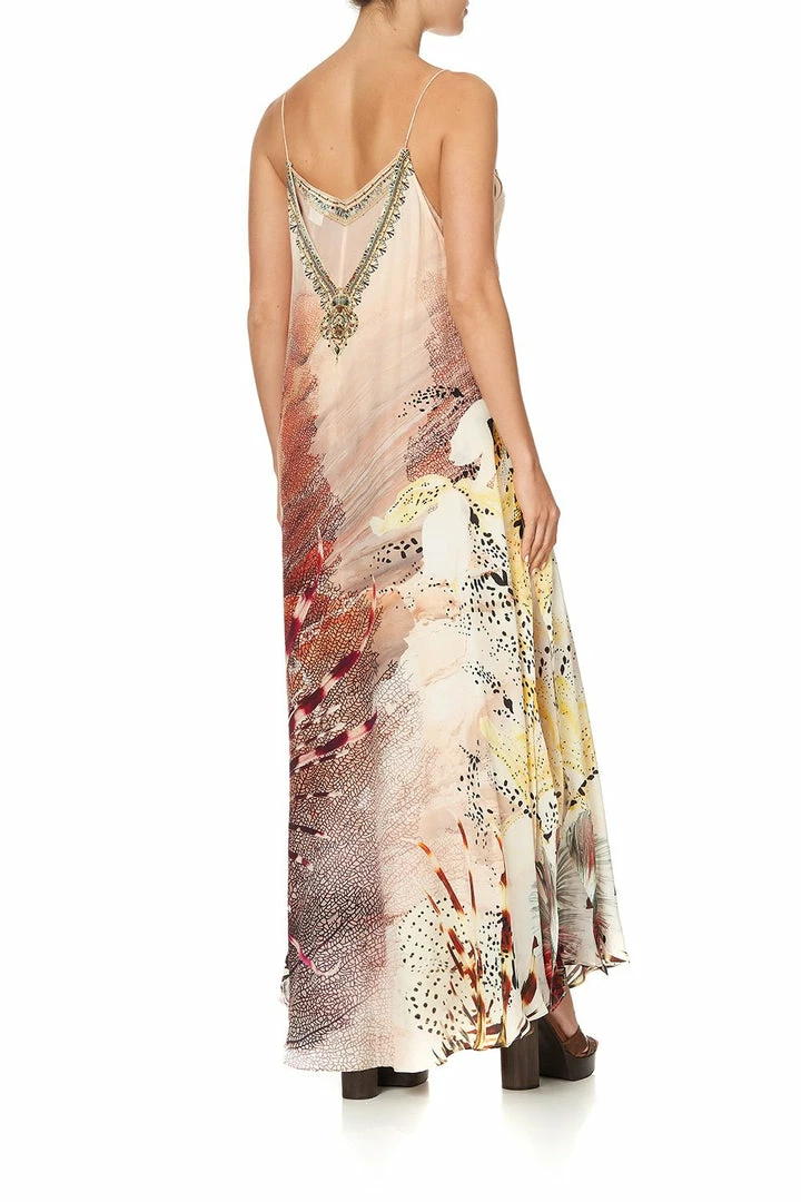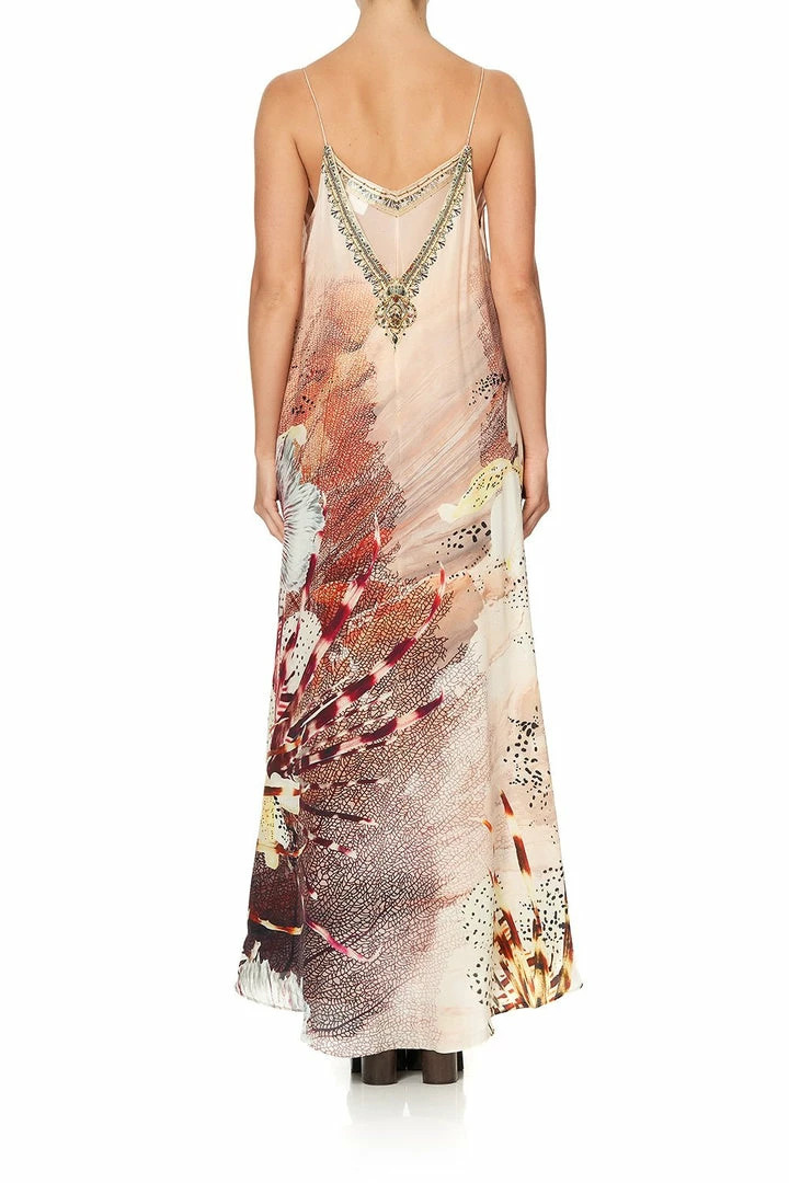 An iconic silhouette from the CAMILLA archives reimagined for our 15-year anniversary collection, the Coastal Treasure Long Dress with Sheer Overlay is effortless luxe. Crafted with a silk canvas depicting an abstract view of the Great Barrier Reef, it features alluring side splits, simple shoestring straps and is finished with hand-applied crystal embellishments. Wear to a summer party or slip into for resort lounging.