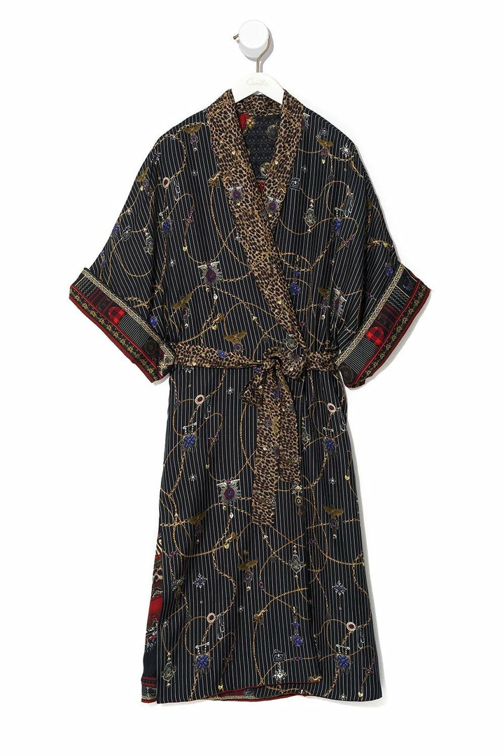 A sartorial ode to tartan clad trailblazers, the London Calling Reversible Robe is inspired by a punk rock rebellion. Expertly crafted from pure CAMILLA silk, this men’s layering piece is styled with a turn back collar, wide magyar sleeves and detachable belt. A luxurious silk robe for a rebellious gentleman, this reversible piece displays two punk perfect prints for statement styling.
