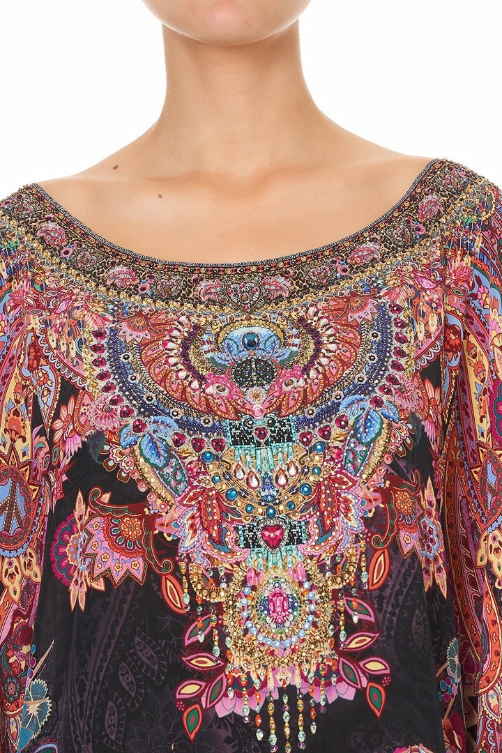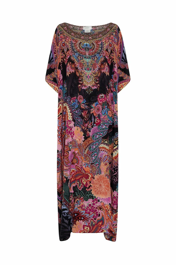 Take a little retro style on vacation with you with the Swinging Sixties Round Neck Kaftan. A multiwear design filled with vibrant paisleys and florals inspired by London in the sixties, this kaftan has a relaxed fit, round neckline and 3/4 length sleeves. Team with sandals by day or dress up with heels by night.