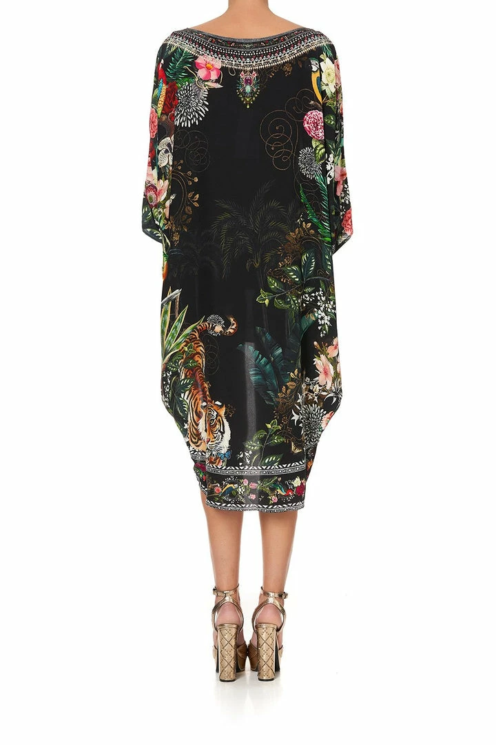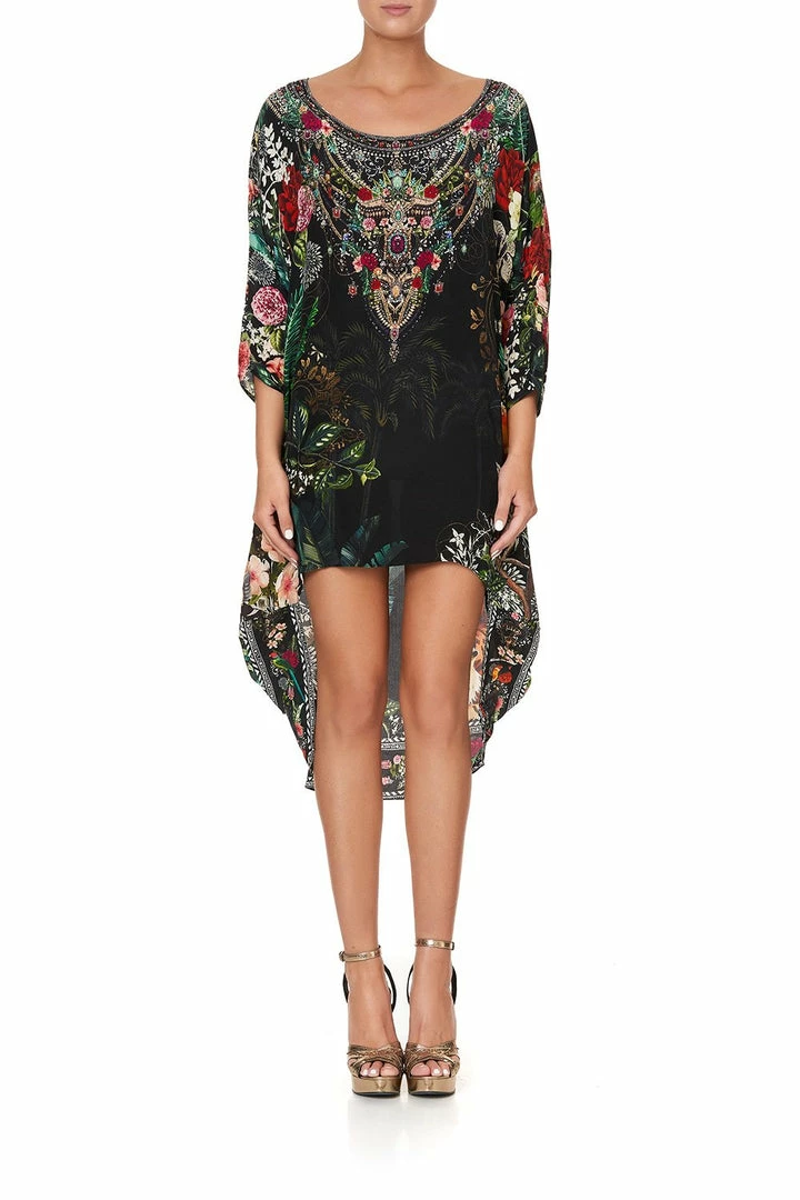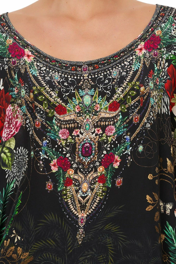 A lush resort-style dress enriched with overgrown blooms, the Raised With Wolves Scoop Back Hem Dress explored the tales of a boundless jungle upbringing within the walls of of a mystical garden. This vibrant silk long sleeve dress features round neckline, relaxed fit, digitally printed silk, as well as hand-placed crystals as detail. An effortless piece to style, we love to wear this piece back with statement sandals on balmy summer nights.