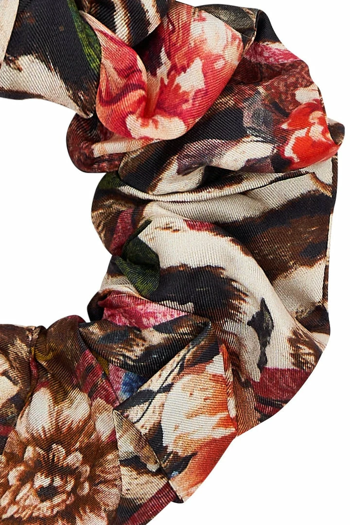 A staple accessory with bold yet feminine details, the Liv A Little Scrunchie is mused by the Queen of the screen. A sweet seduction amongst fiercely feminine blooms. With hand painted florals details, this scrunchie is crafted in buttery soft silk, this scrunchie is an effortless statement that ensures practical and snag-free styling abilities. It pairs perfectly with any Liv A Little piece to add the finishing touches to a stunning and chic ensemble.