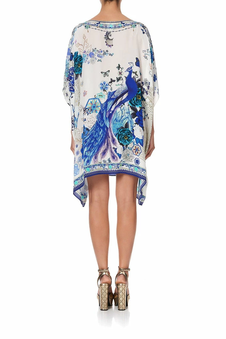 An iconic resort dress silhouette, the White Side of The Moon Short Round Neck Kaftan is a hypnotic masterpiece that poetically depicts scenes from Chinese porcelain. Crafted with a floaty CAMILLA silk that entails studies of Chinese zodiac and florals hand painted by our in-house artists, its relaxed free-flowing fit design allows this piece can be styled a myriad of ways time and time again. Wear free flowing, tie to halter dress for a night of dancing, or strapless for a chic evening affair. To discover more ways to style, visit the CAMILLA style guide.