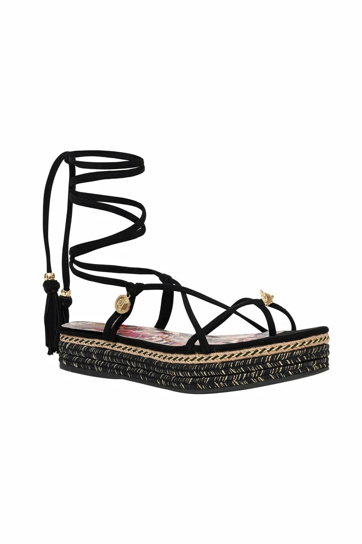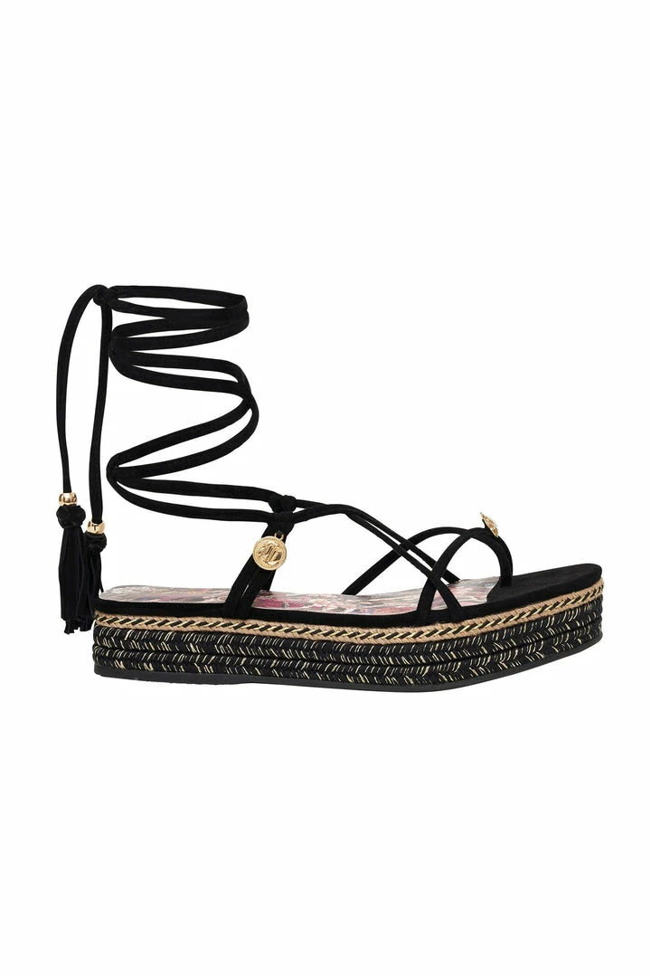 A leather sandal striking in form, the Liv A Little Skinny Strap Sandal are simplistic luxe elevated with CAMILLA gold metal charms. Designed in a heavenly soft 100% leather – these summer essentials feature alluring suede tassels, plaited jute contrast feature and suede skinny strap laces that are adjustable to ensure they fit you perfectly. A fierece statement sandal, pair with matching Liv A Little print silhouettes.