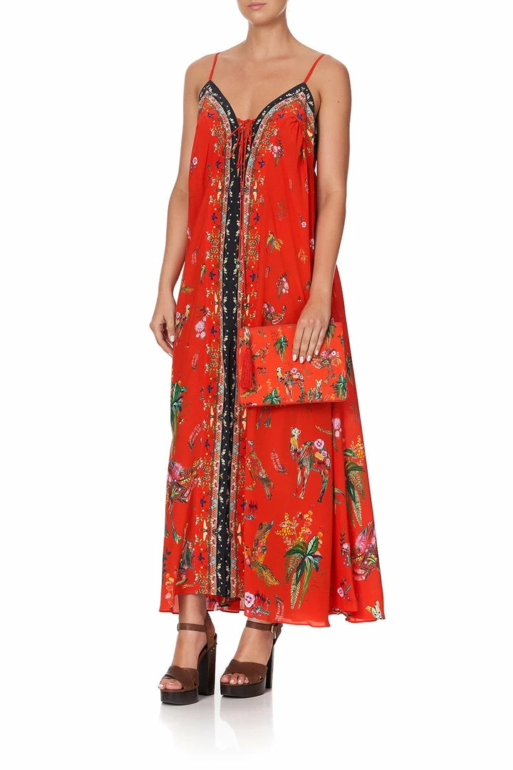 Musing a canvas reminiscent of a choir of nature in the Daintree Forest, the Cinema Paradiso Small Canvas Clutch oozes luxury. This printed purse features charming tassels, practical parrot clip, internal zip pocket, as well as contrast piped edge.