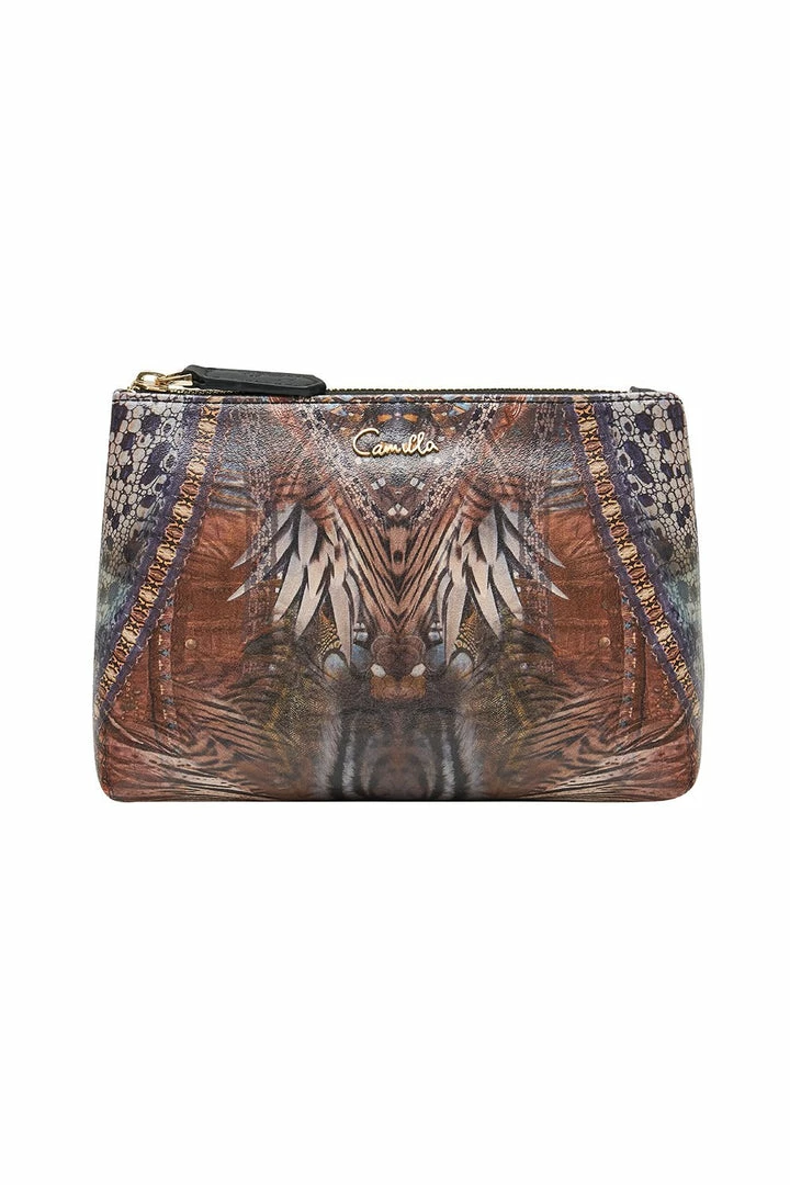 Inspired by the wonders of this sacred land, the Kakadu Calling Small Makeup Pouch pays tribute to native wildlife that call it home. This printed makeup bag features faux leather, practical internal pocket storage, sumptuous all over print, as well as contrast zipper pullers.