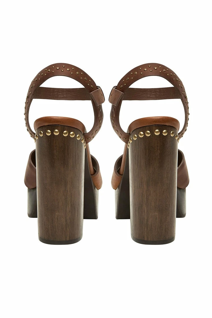 Boasting dainty detailing, the Tan Wood Platform is proudly feminine. These tan heels boast lavish studs, practical buckle and adjustable straps, snake print embossed cow leather, as well as 100% cow leather fabrication.