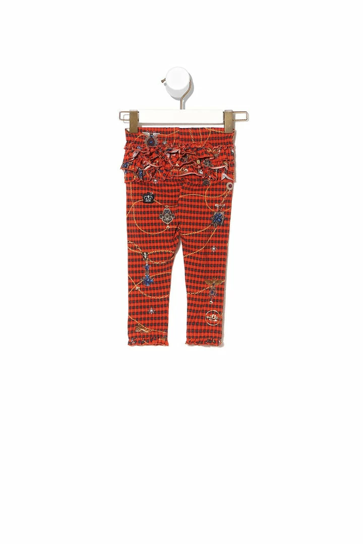 Blending rebellion with romance, the Poetic Anarchy Babies Leggings With Frills are an adorable pair of full-length pants inspired by the children of the anti-establishment. Expertly crafted from a stretch cotton, these tartan trousers pay homage to punk rock with trinket, chain and fun safety pin motifs. Softening its anarchy inspired edges, frills frame the ankles and form a cute tiering of ruffles at the back. Keep your little punk princess warm and pair back with the matching Poetic Anarchy Babies Frill Hoodie Jacket.