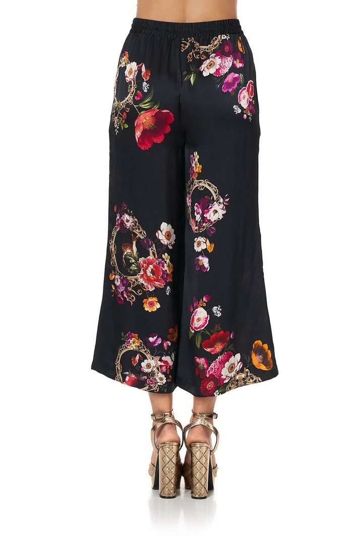 A magnificent piece of luxe soft suiting, the Mirror Mirror Cropped Lounge Pants are effortlessly chic. Crafted in a black silk enriched with a print inspired by studies of Cinderella, these cropped trousers feature a soft boho flare, elasticated drawcord waistband and in seam pockets. A magical piece for gypsy lounging or paired back with matching cami for an elevated evening look.
