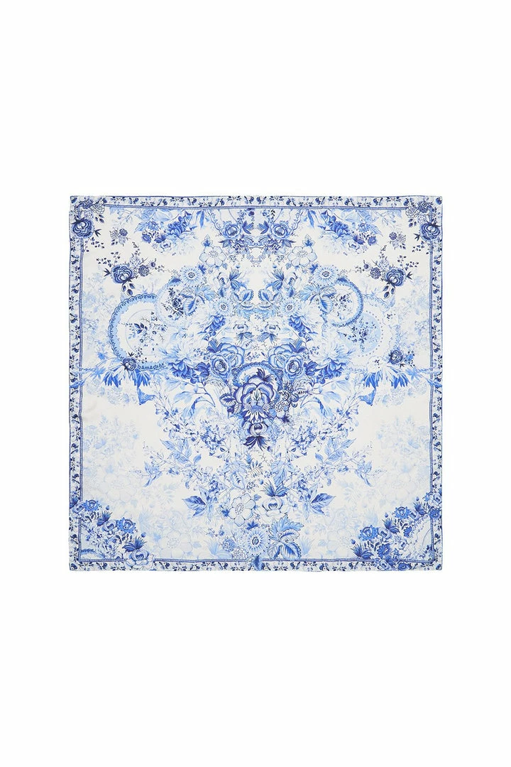 Paying homage to a duchess with a taste for the finer things, the High Tea Large Square Scarf is a canvas of pure white CAMILLA silk adorned with aristocratic florals in refined shades of cobalt oxide. Hand-embellished with a dazzling array of crystals, this silk scarf is framed with a neat contrast border, echoing our elite muse’s impeccable styling. Wear around the neck as a traditional scarf or visit the CAMILLA style guide for inspiration on how else to embrace this statement accessory.