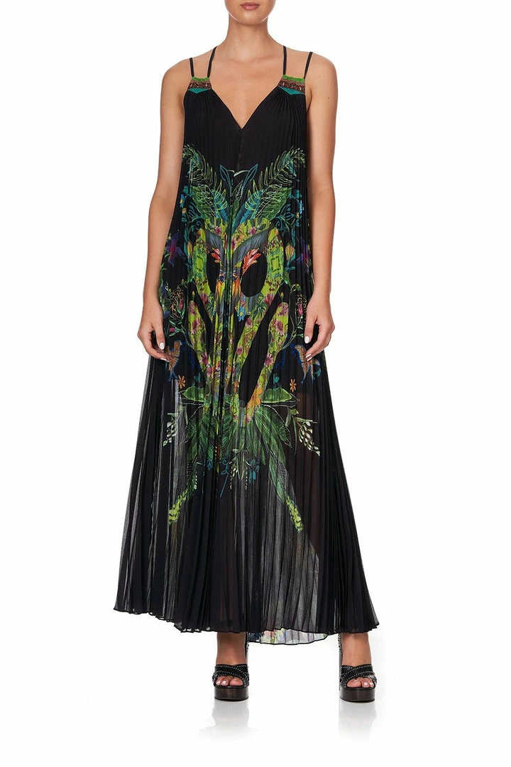 Embracing a hypnotic scene of Queensland’s Daintree River at dusk, the River Cruise Pleated Maxi Dress w/ Yoke embodies resort luxe. Cut to form in a floaty pleated silhouette, this pleated maxi dress boasts a comfortable relaxed fit, adjustable straps, printed, fully lined, as well as neckline crystals as detail. Wear post swim for luxe sunbed lounging, or paired back with heels for an evening summer look.