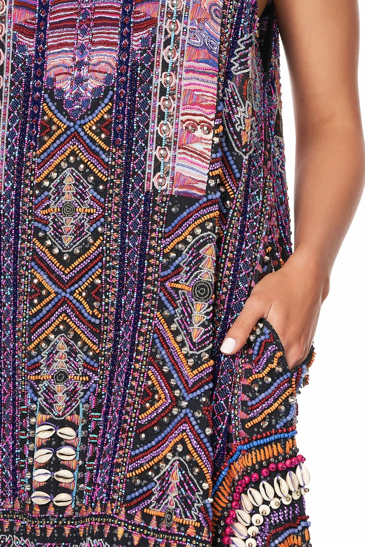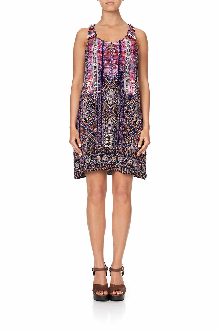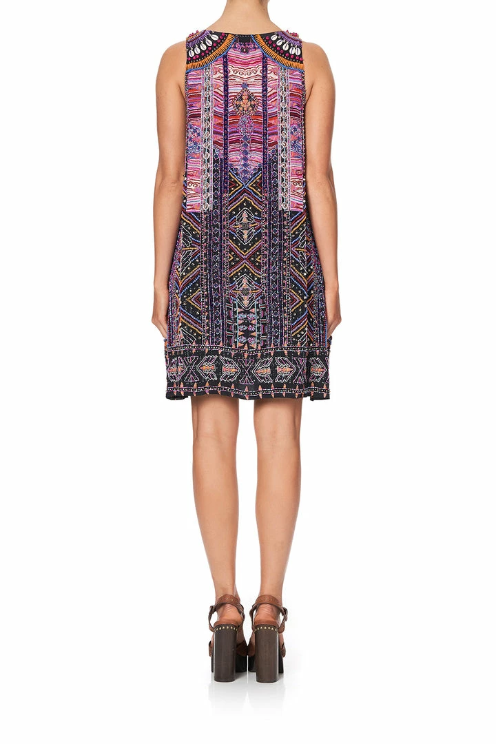 A Bold and vibrant silk mini dress, the Mina Mina Round Neck A- Line Dress is a representation of phenomenal workmanship and artistry. The sultry Masterpiece features a fully lined, flattering short length crafted in pure silk with heavy hand embellishments and embroidered to perfection.